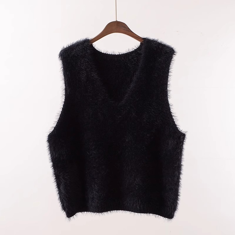 韓国ファッション トップス ベスト 無地 レディース Vネック 秋冬 ニットベスト 前開き もこもこ ニット レイヤード シャギー ジレ トップス ゆったり レディーストップス