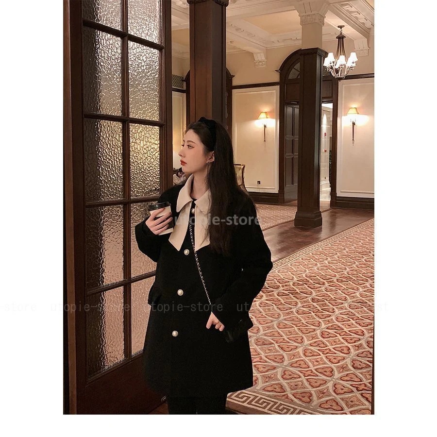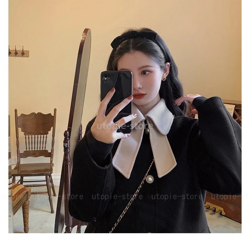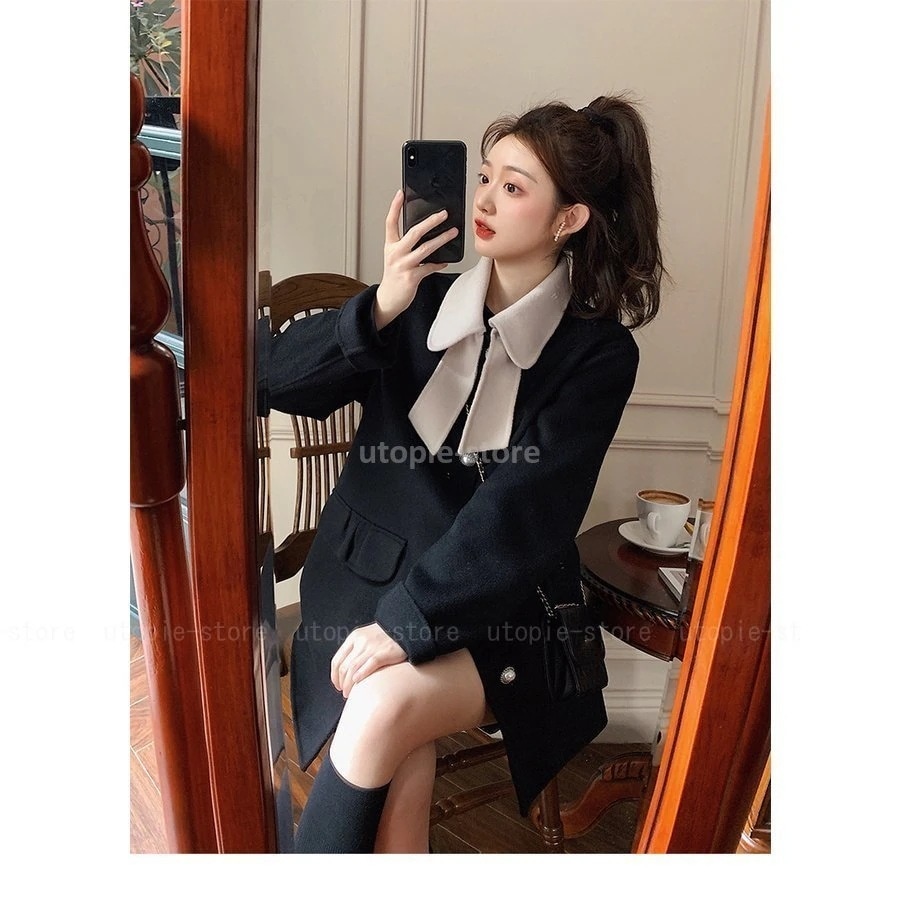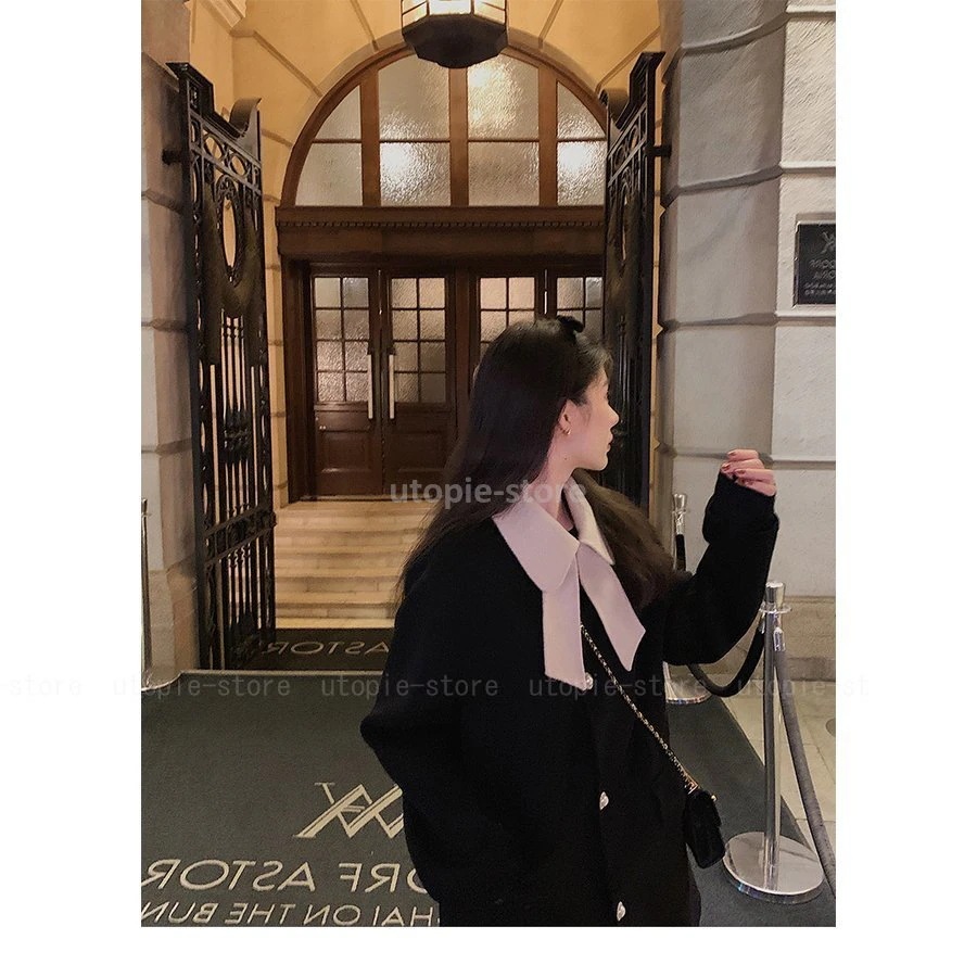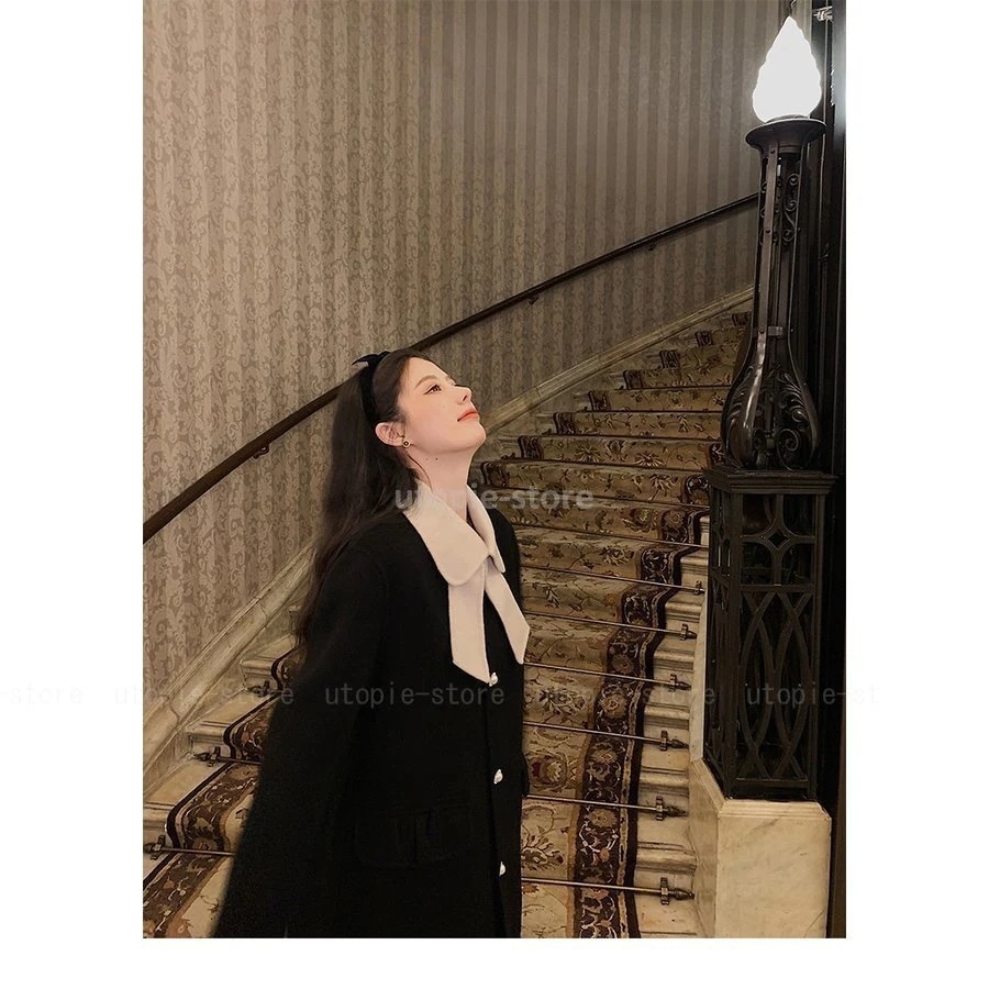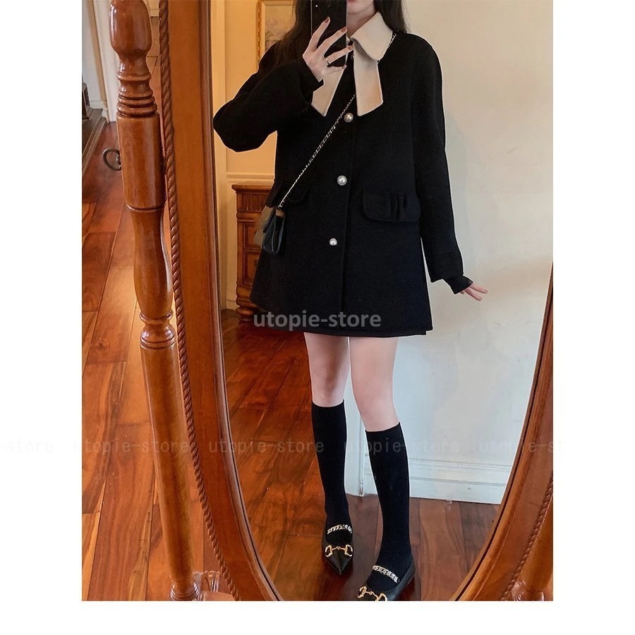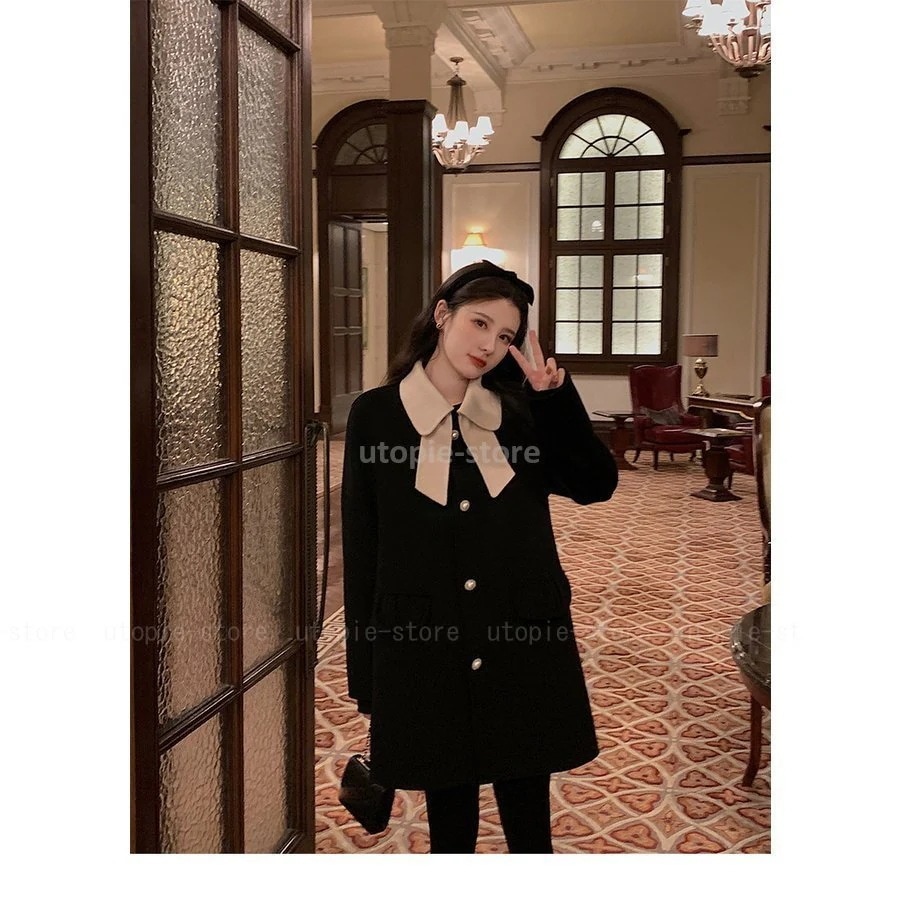 大人っぽチェスターコート 冬アウター春トレンチコートチェスターコート レディース 秋冬 チェスターコート 黒 ミディアム丈ラシャコートリボンネック ジャケット