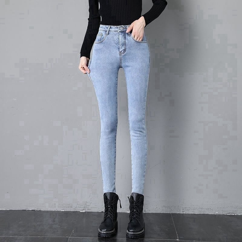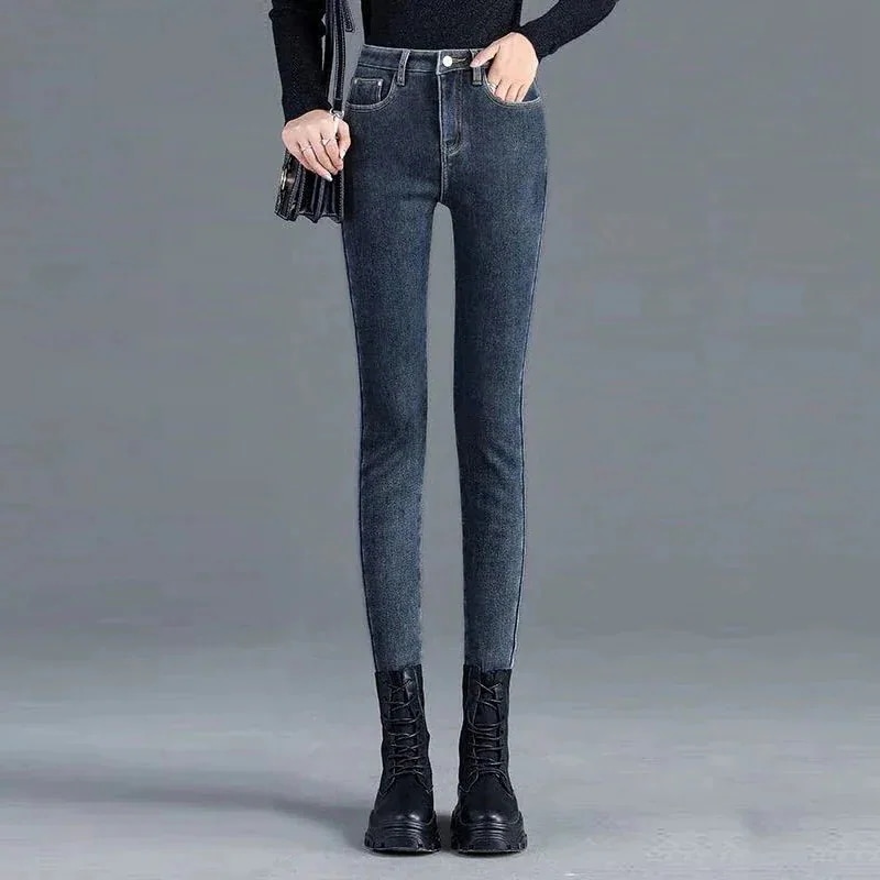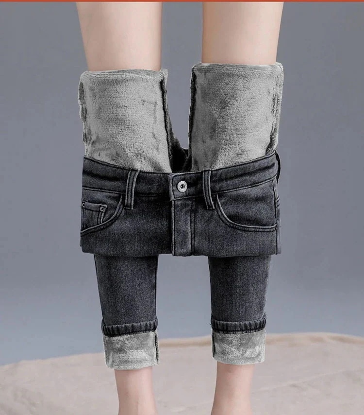 レディース ジーンズ 裏起毛 デニムパンツ ロングパンツ ポケット付き ボタン付き ジップ付きロングデニム ハイウエスト ゆったり 厚手 あったか 暖かい デニムボトムス スキニーパンツ ひ
