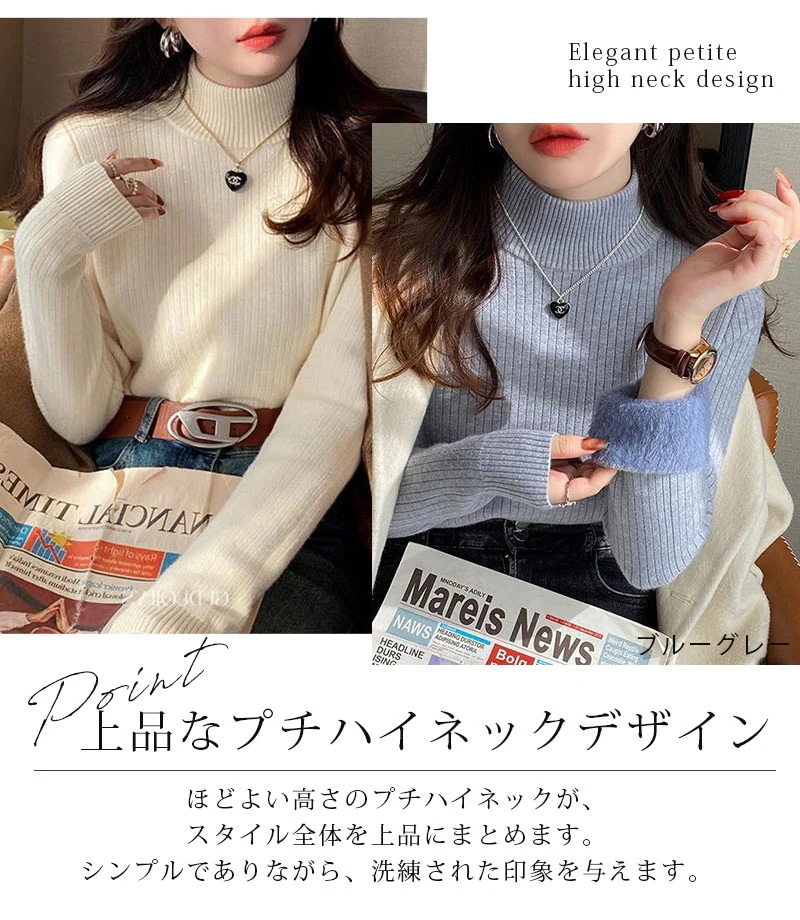 裏起毛 ニット ハイネックニット S M L レディース リブニット ハイネック トップス 長袖 厚手 極暖 セーター ニットセーター 暖かい ふわふわ プルオーバー 裏起毛ニット チクチクし