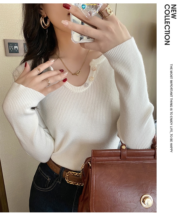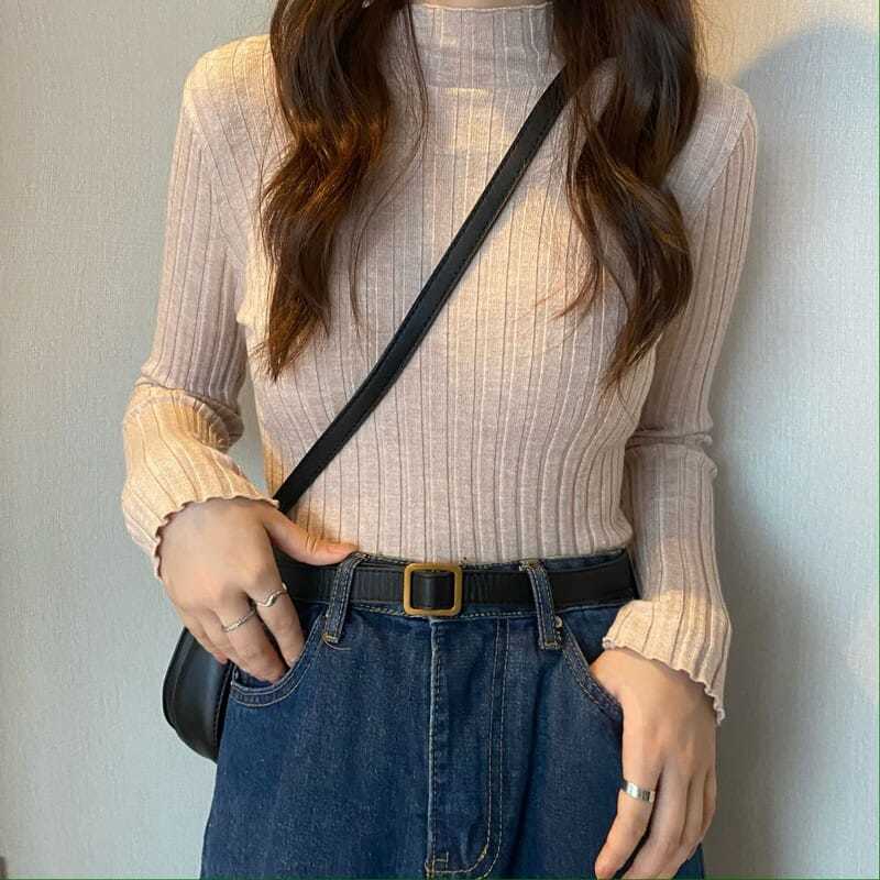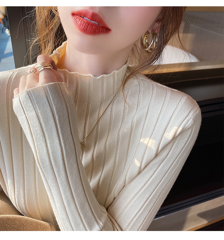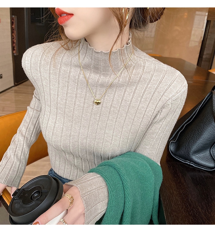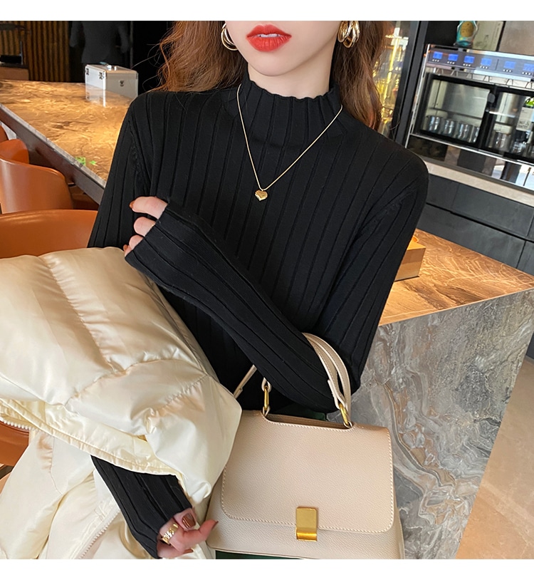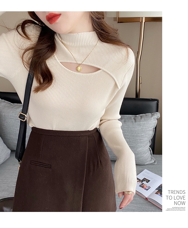 4タイプ選べデザインニット トップスレディースファッションハーフタートルネックベースの長袖ニセーター 春秋冬 ニット