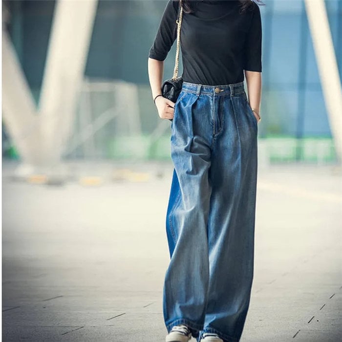 デニムワイドパンツデニムワイドパンツレディースジーンズデニムパンツロングパンツボトムスハイウエスト体型カバー大人カジュアル可愛い シンプル