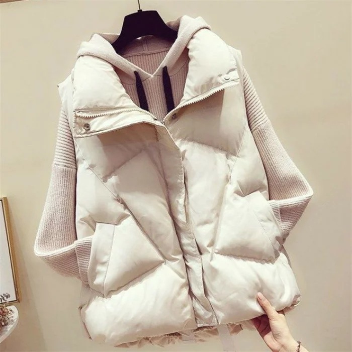 ダウンベストレディース大きいサイズアウタージャケットベスト中綿フェイクダウン上着羽織りハイネック軽量春秋フェイク通勤通学暖かい無地お出かけノースリーブゆったり体型カバー大人可愛い