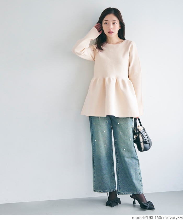 デニムパンツ ビジュー付き