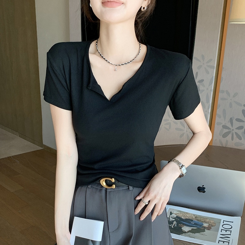 2024新作韓国ファッションサマーニットTシャツ 8カラー夏ニット レディース 無地 ニット プルオーバー リブニット トップス