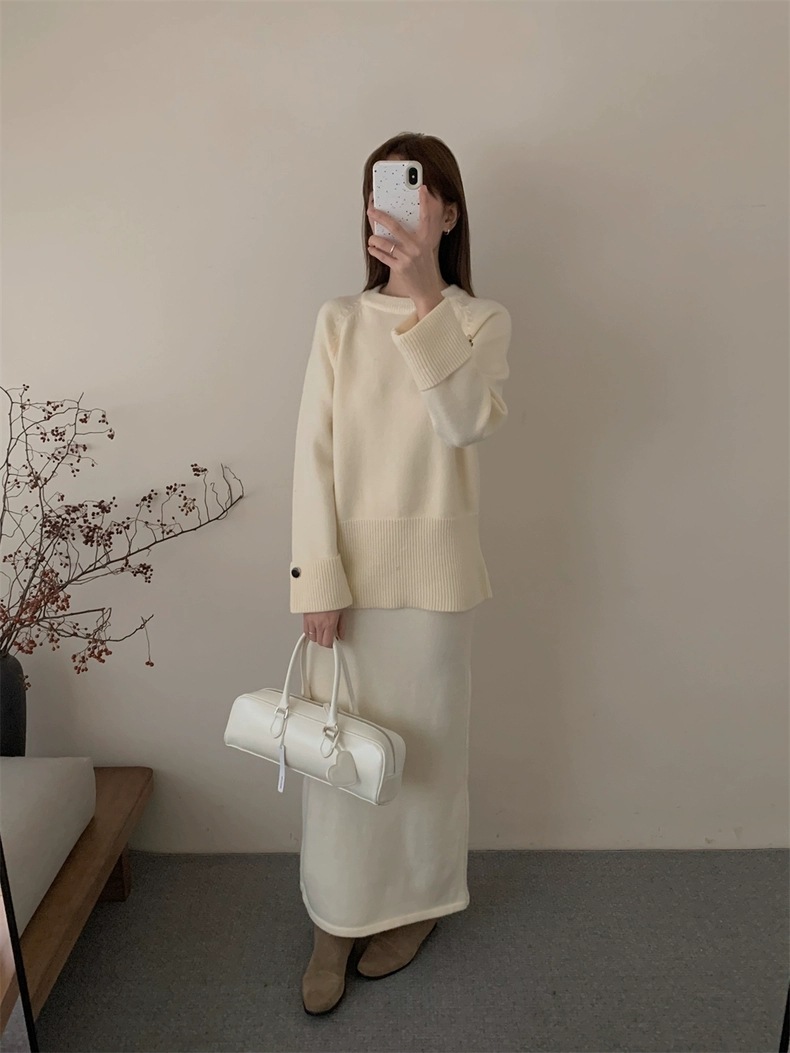 FREE1色韓国デザイン長袖秋冬厚手版スーツスプライスバイクスーツジャケットハイウエストスカート2ピースセット新型 セットアップ