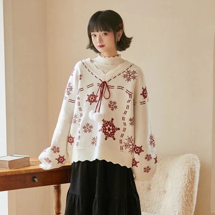 人气新作クリスマスジャンパー赤大晦日ニットセータープルオーバー雪の結晶ジャカード緩い汎用性の高い甘いトップス秋冬モデル外 サンタコス