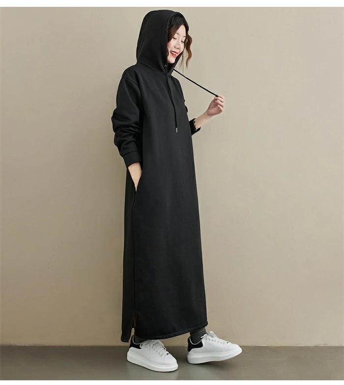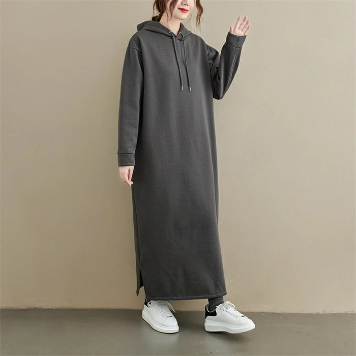 裏起毛 ワンピース レディース 秋冬 スウェット パーカー パーカーワンピース あったか 秋 冬 ロングパーカー スウェットワンピース ロング丈 ミモレ丈 長袖 フード付き トレーナー スリット 厚手