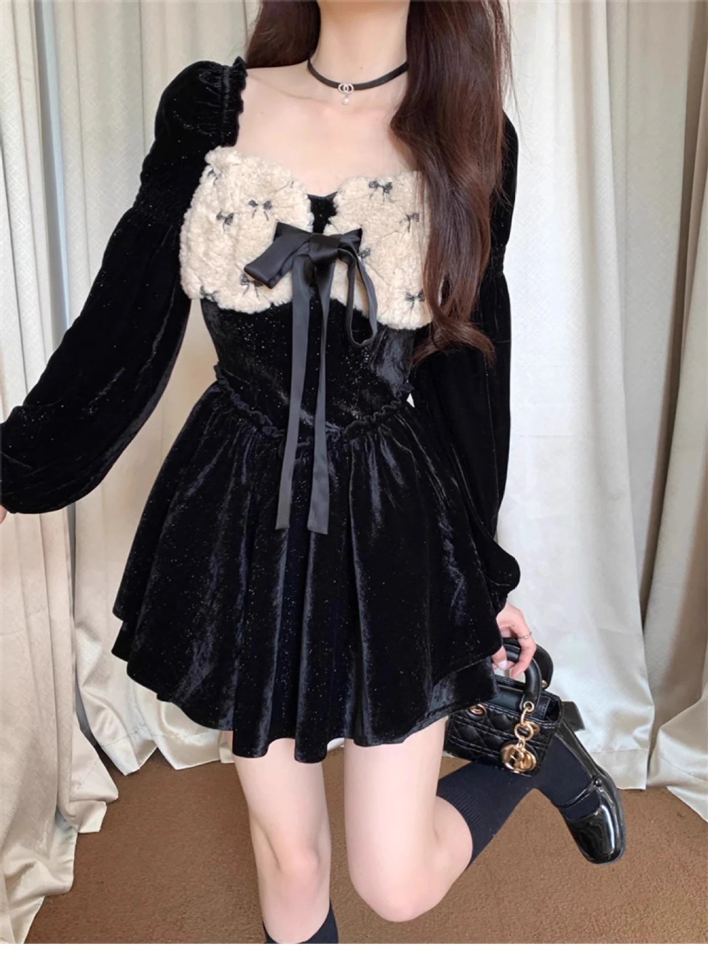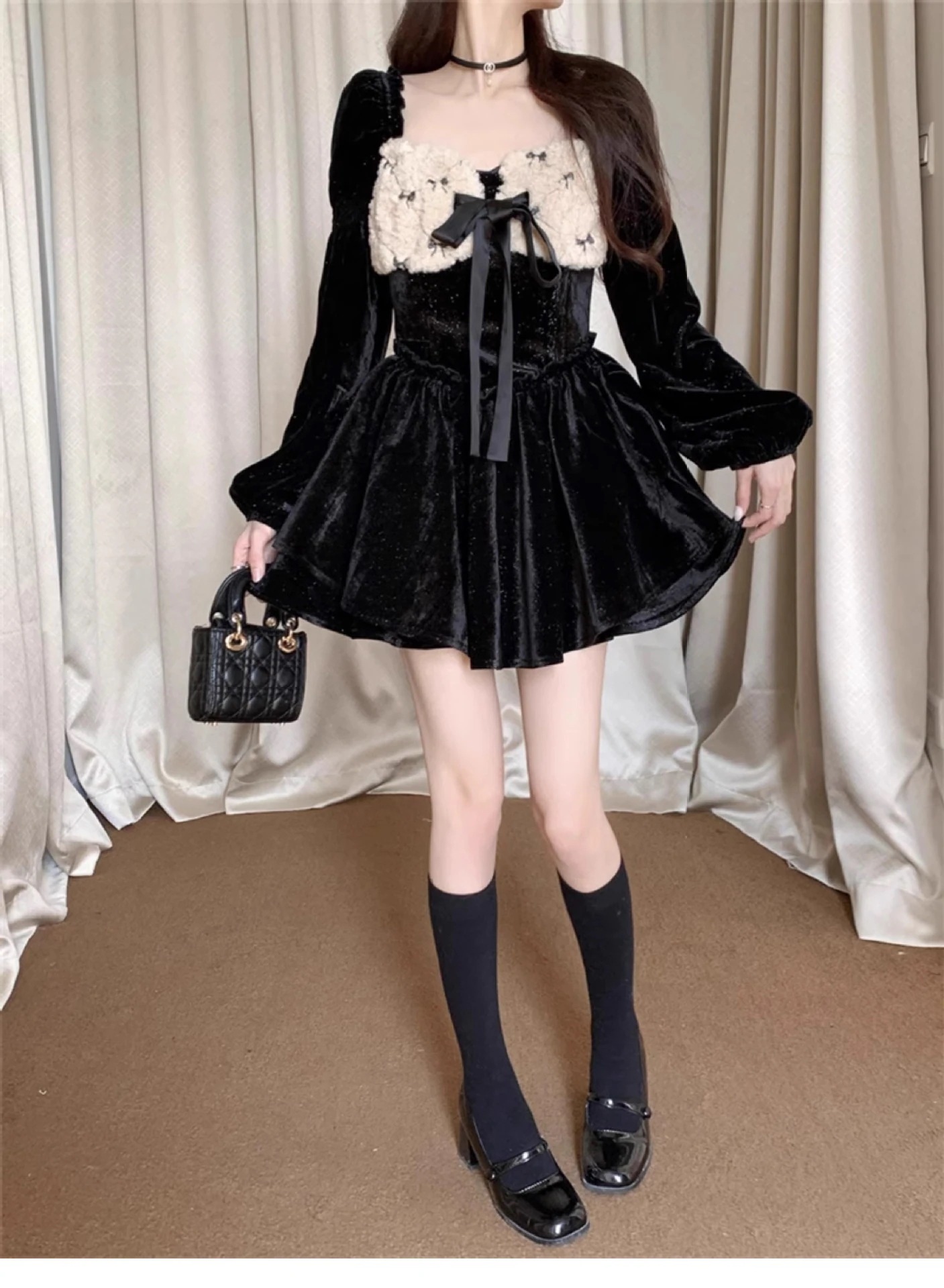 サンタコスプレ と ベルベット レイヤー ファイングリッター ふわふわスカート スクエアネック ドレス ドレス クリスマス レディース 韓国