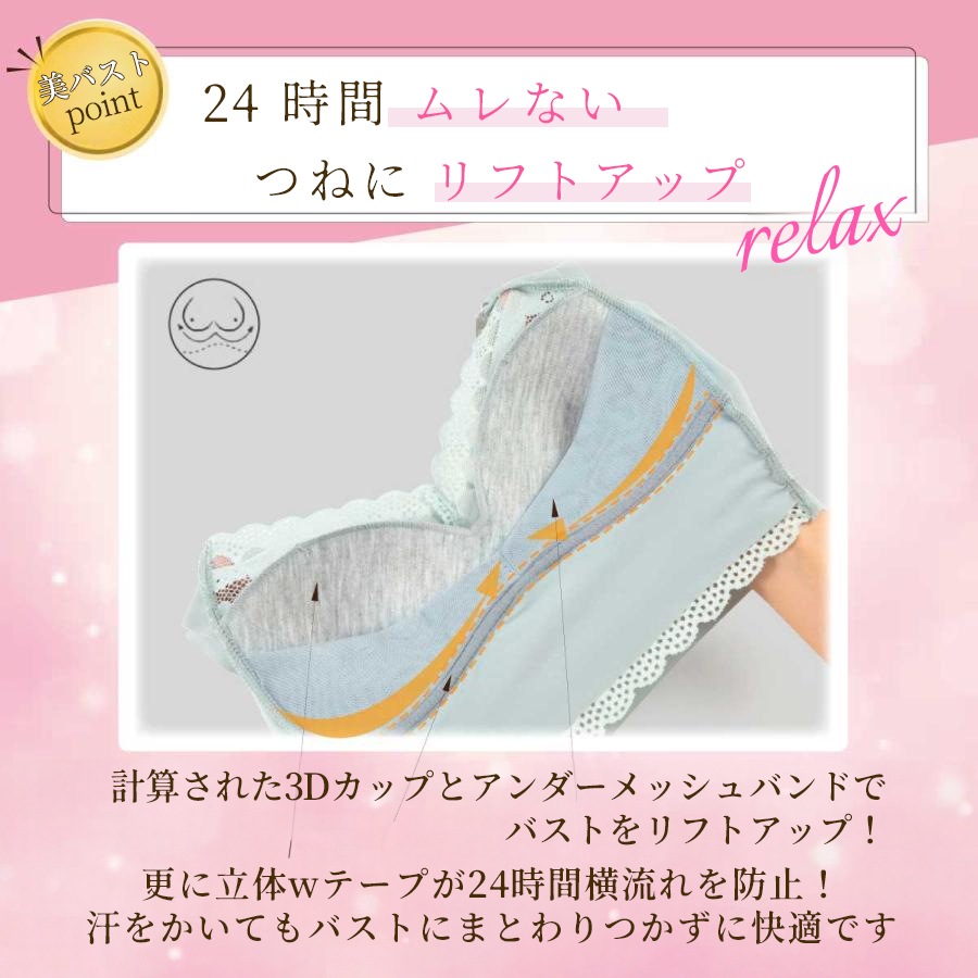 ナイトブラ ブラジャー ノンワイヤー 40代 50代 脇高 育乳 夏用 効果 大きいサイズ 脇肉補正 30代 20代 脇高 relax ブラジャー