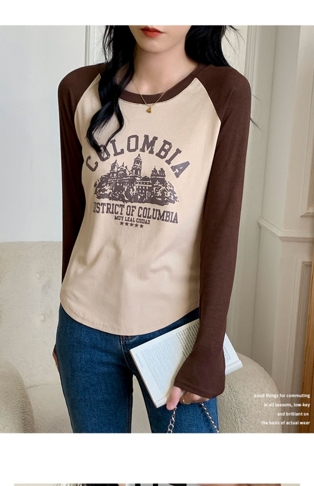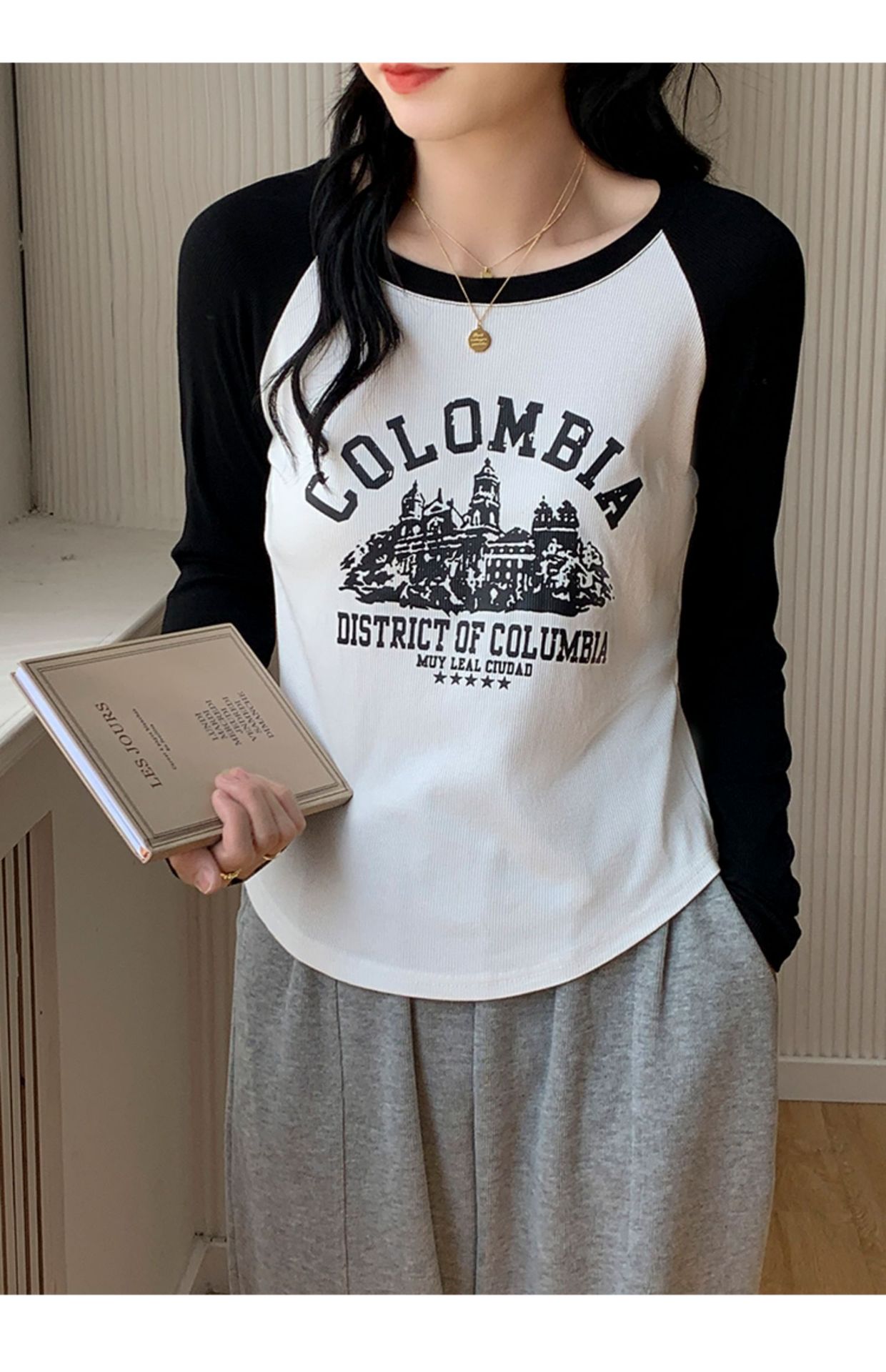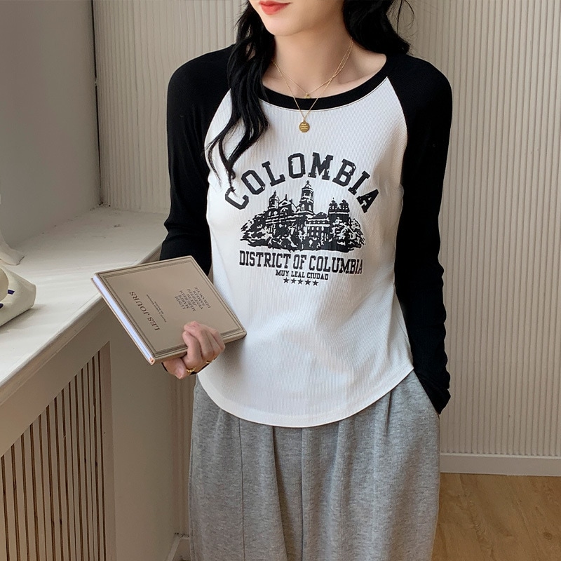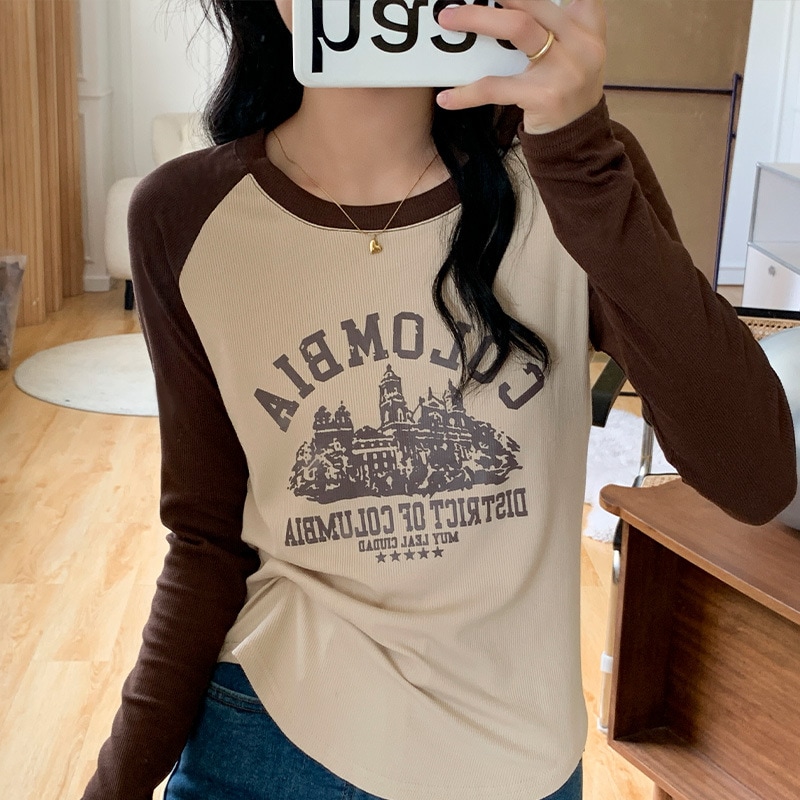 2024秋新作 ロングTシャツ 韓国 ラグランスリーブインナーボトム スウェット トップス ティーシャツ ロンT 長袖 tシャツ Tシャツ カットソー