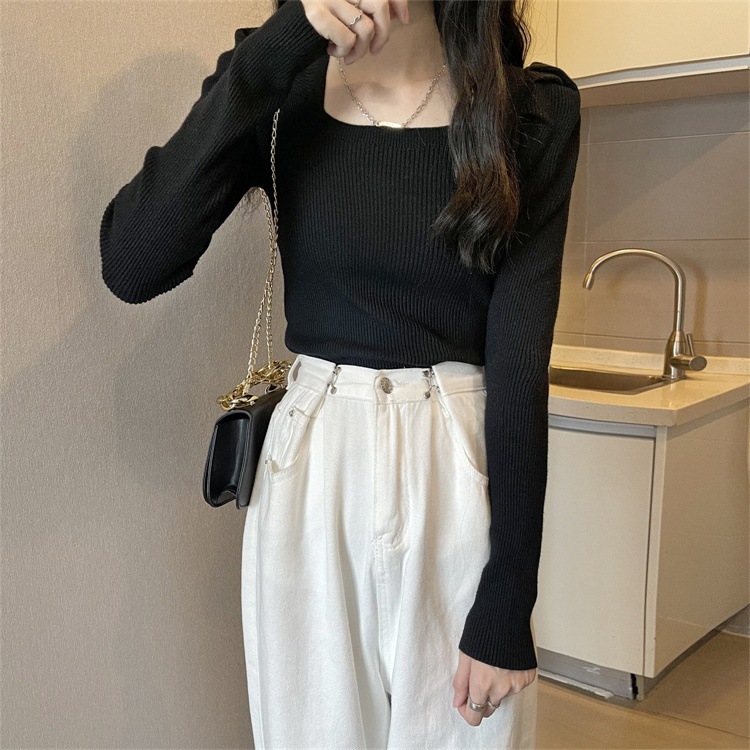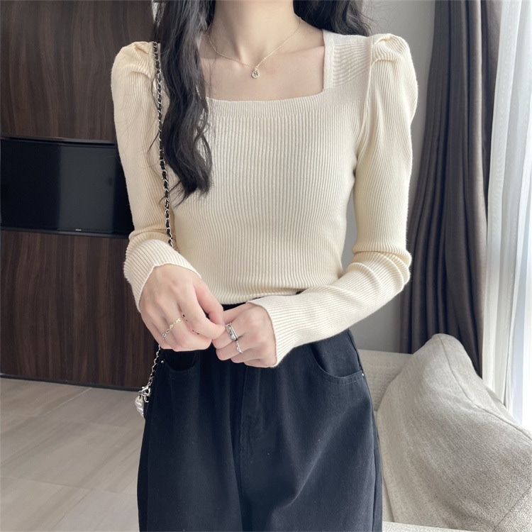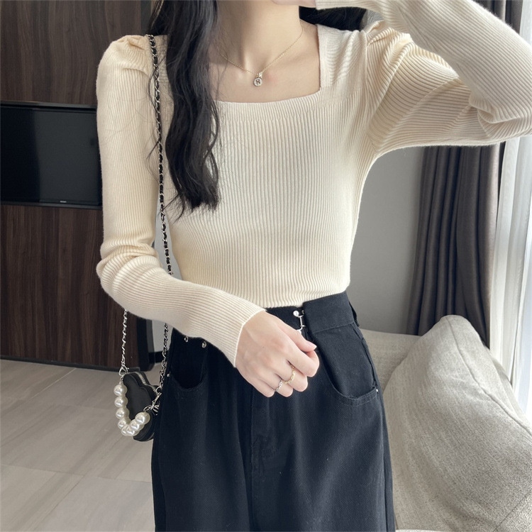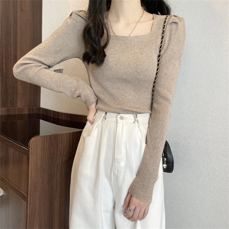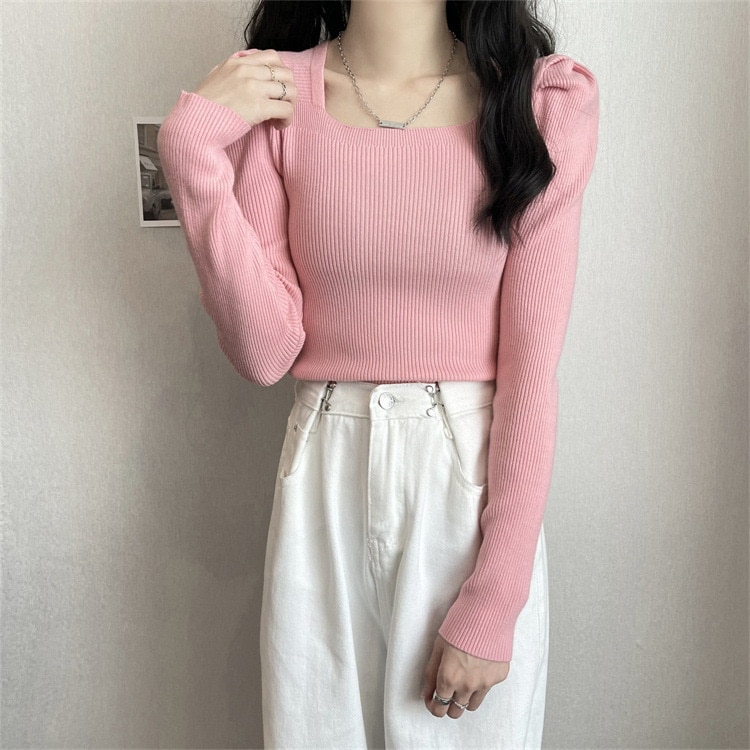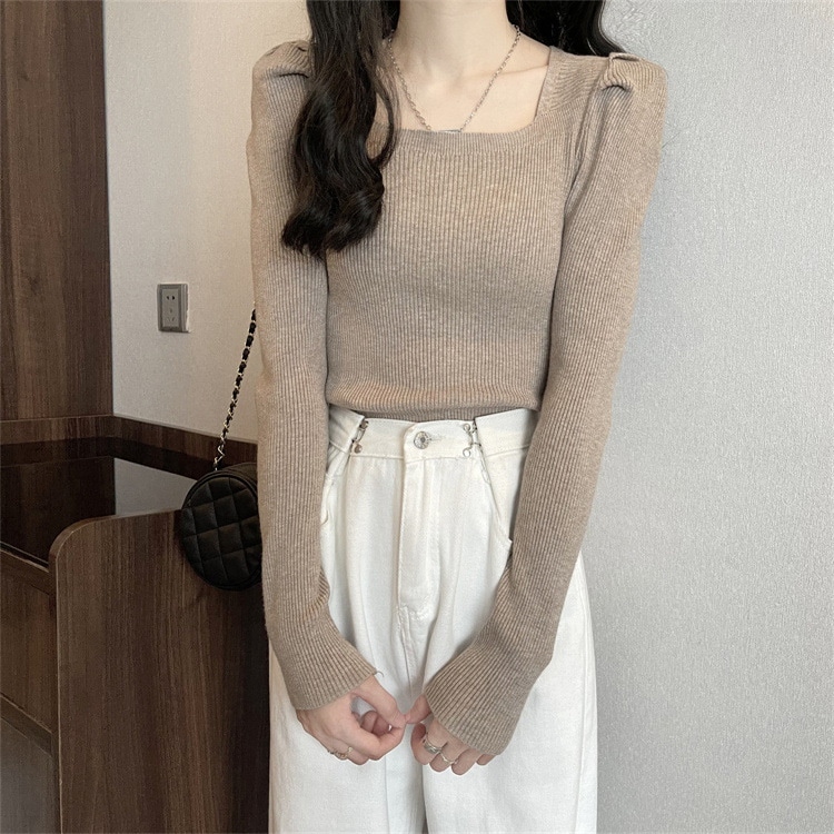 韓国ファッションニット レディース無地プルオーバー リブニット レディース カシミヤタッチベーシックニット ニット