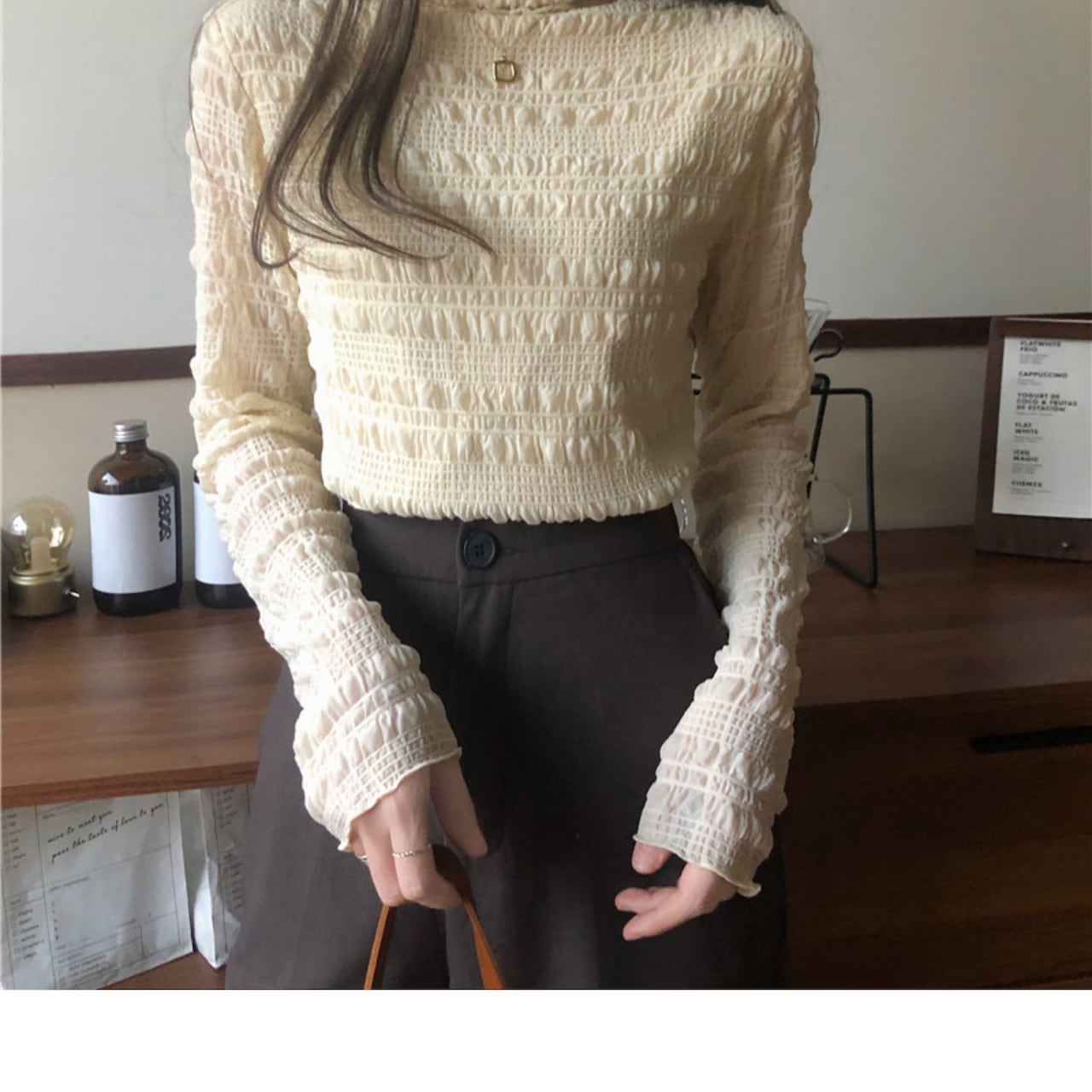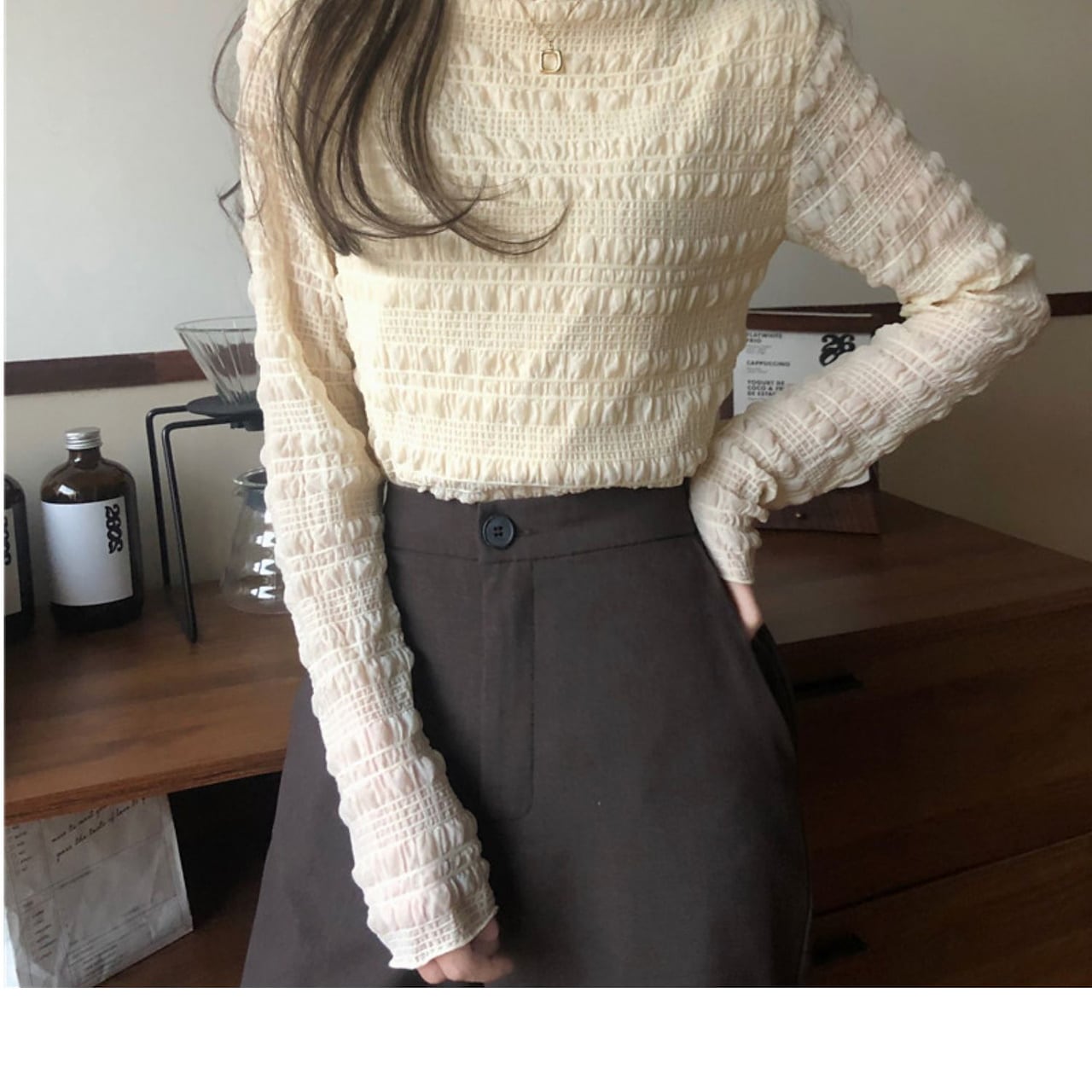 シフォンブラウス シアーブラウス ボリューム袖