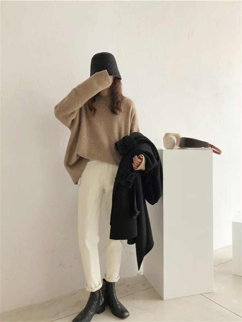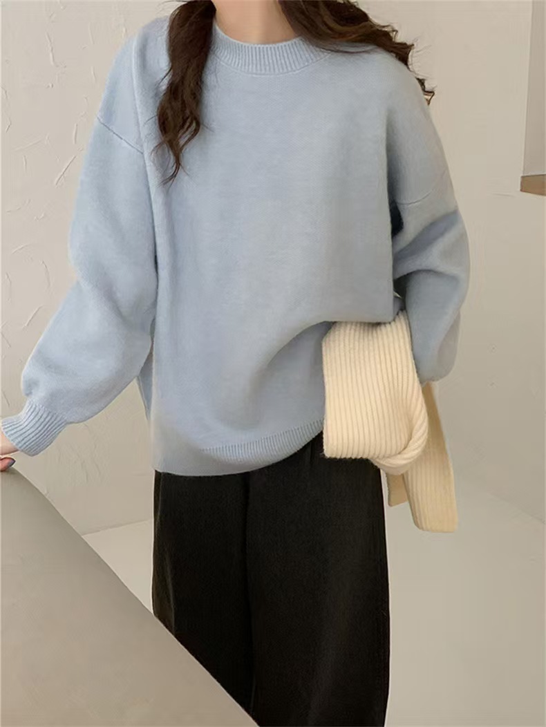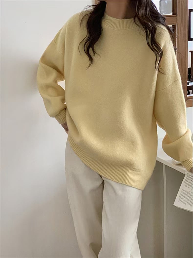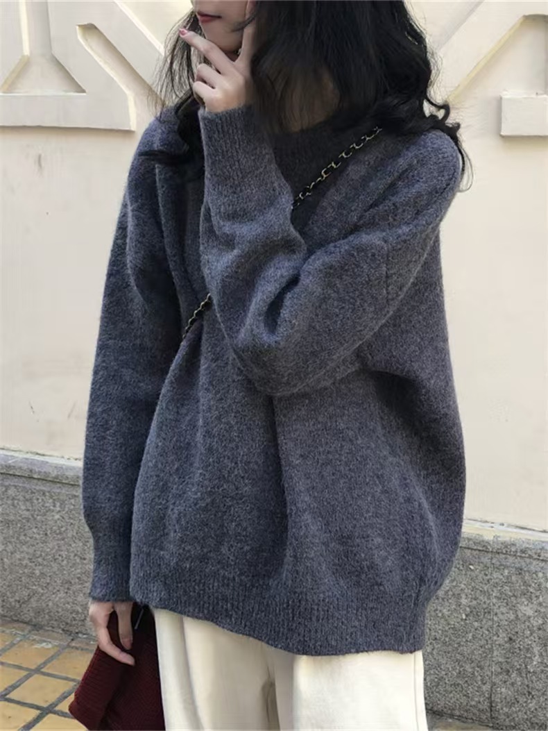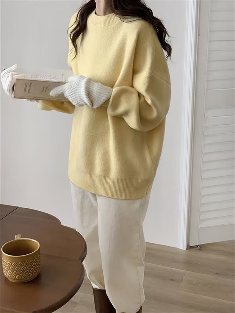 韓国人気商品 厚手 ニット服 セーター 女性 冬アウター ルーズ セーター 大サイズ カシミヤタッチ 無地 厚手シャツ 秋冬 韓国ファッション レディースファッション ベーシックニット