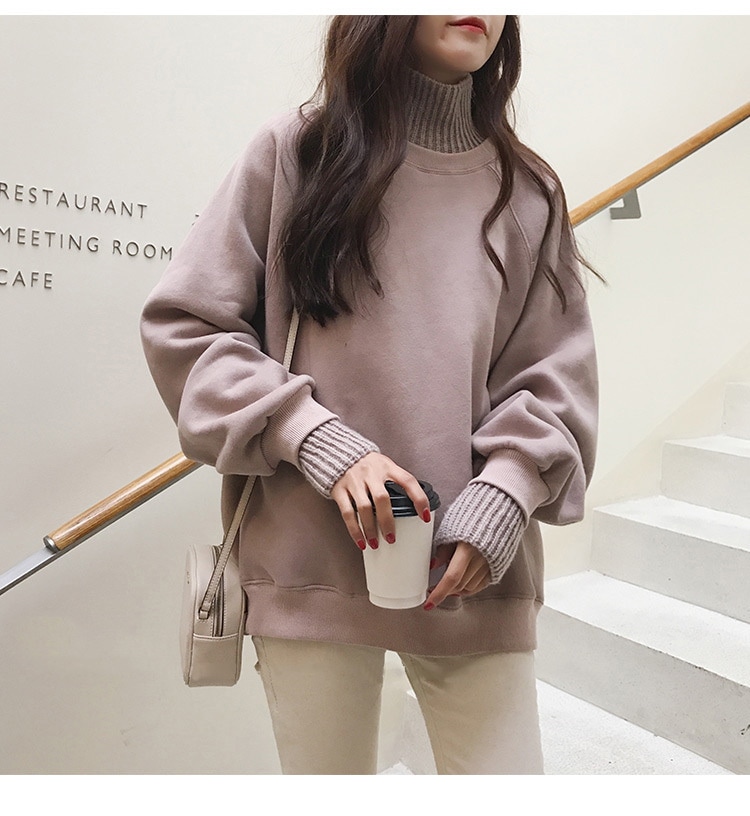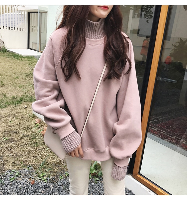 レイヤード風 ニットドッキング 裏起毛 スウェット セーター パーカー トレーナー 長袖 秋服 冬 韓国ファッション カジュアル トップス 大きいサイズ レディース