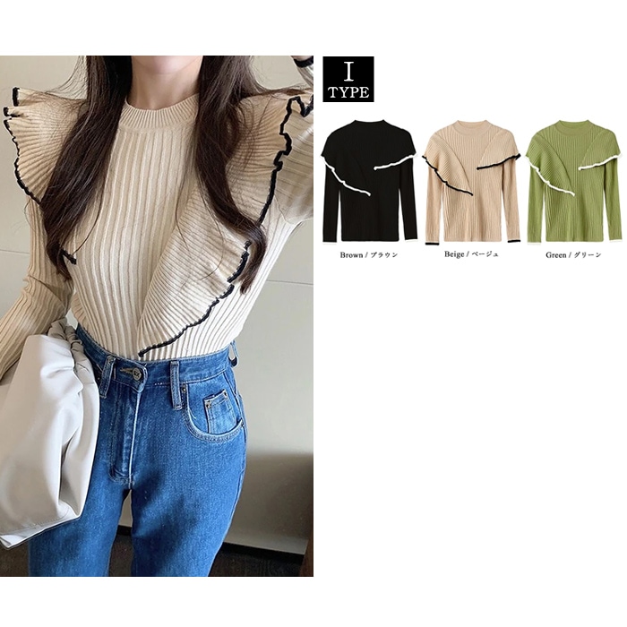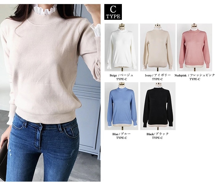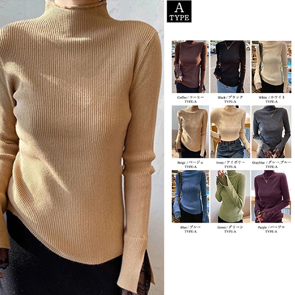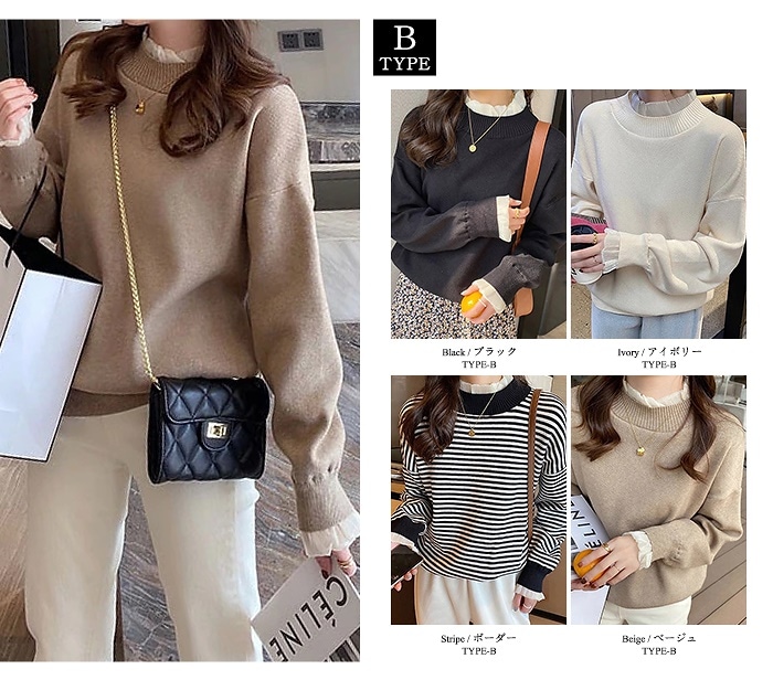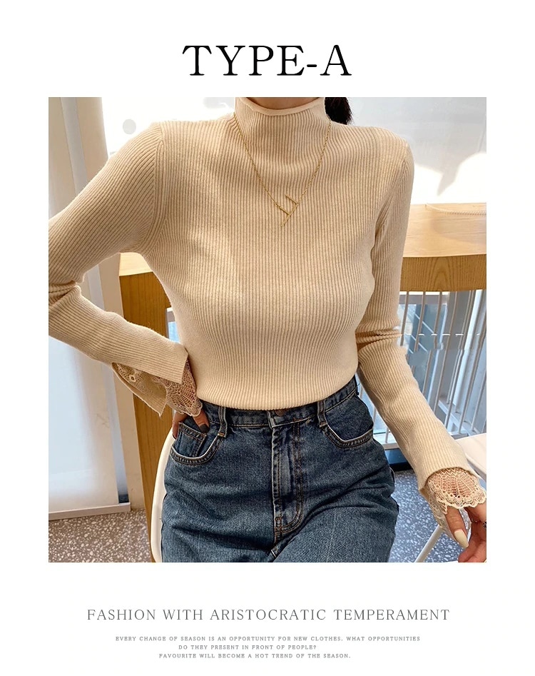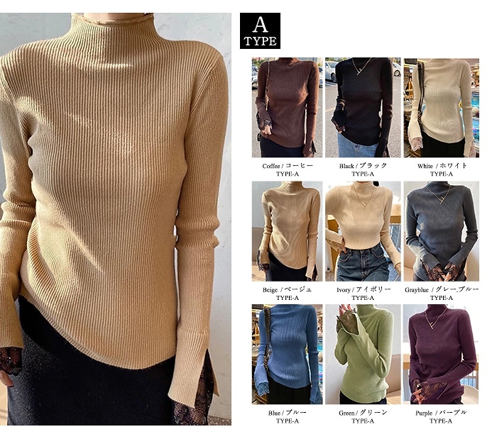限定SALE レース切り替えの袖 ハイネック 着痩せ ニット トップス 韓国ファッション 可愛い ニット