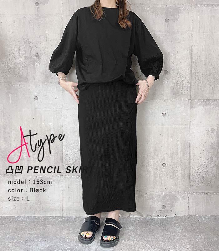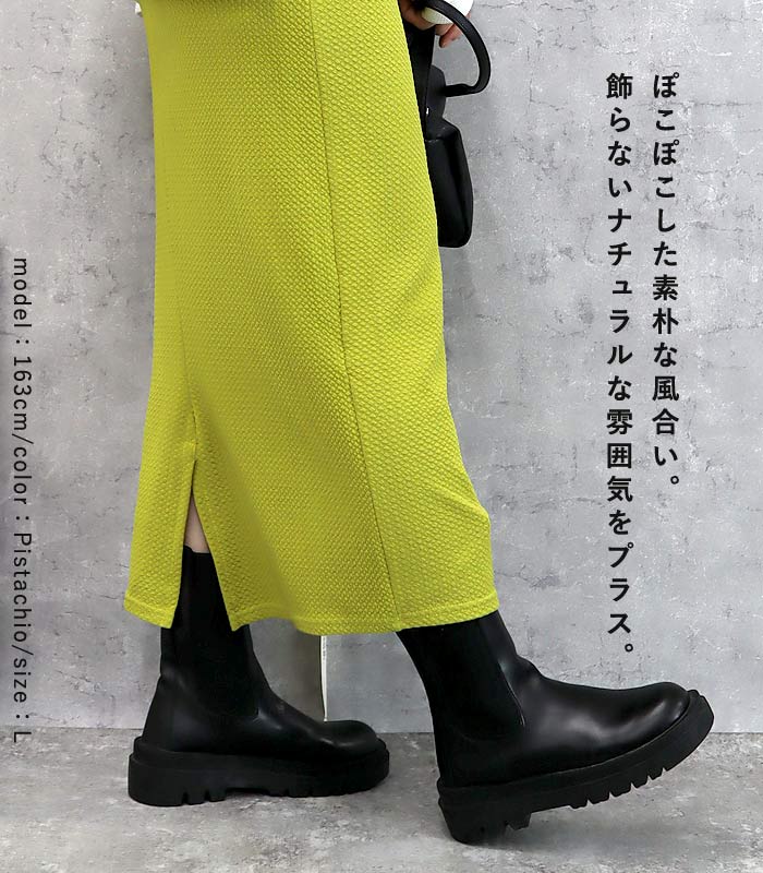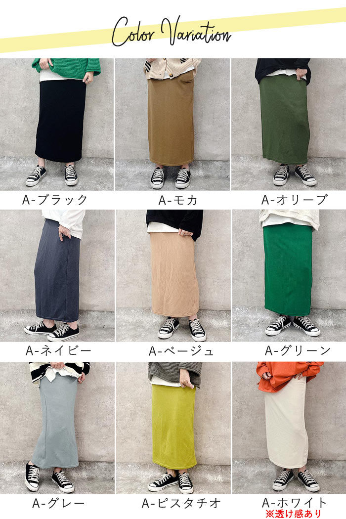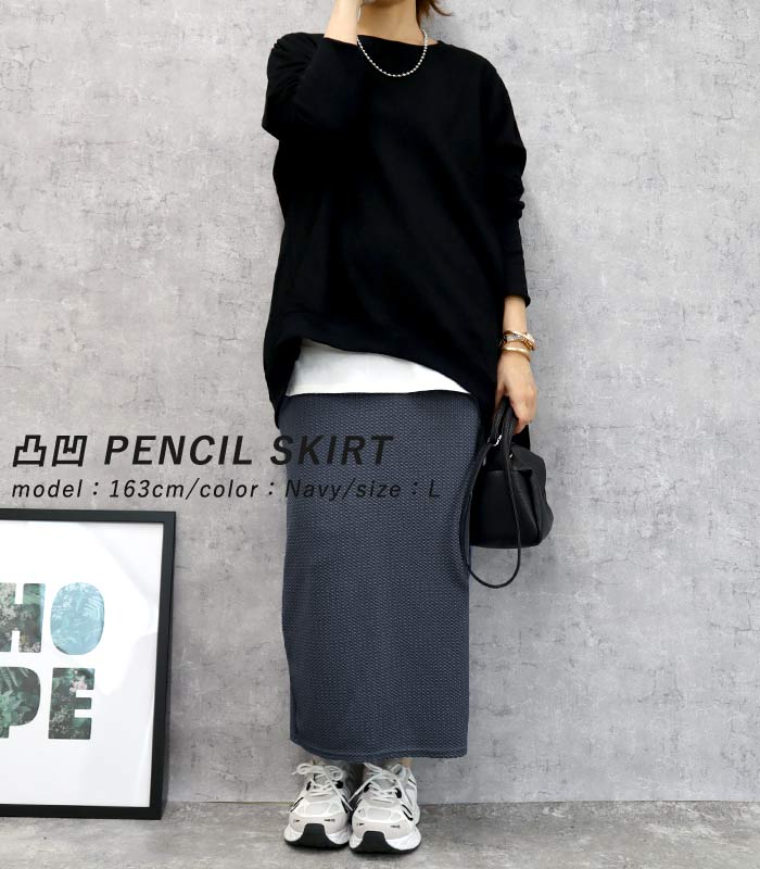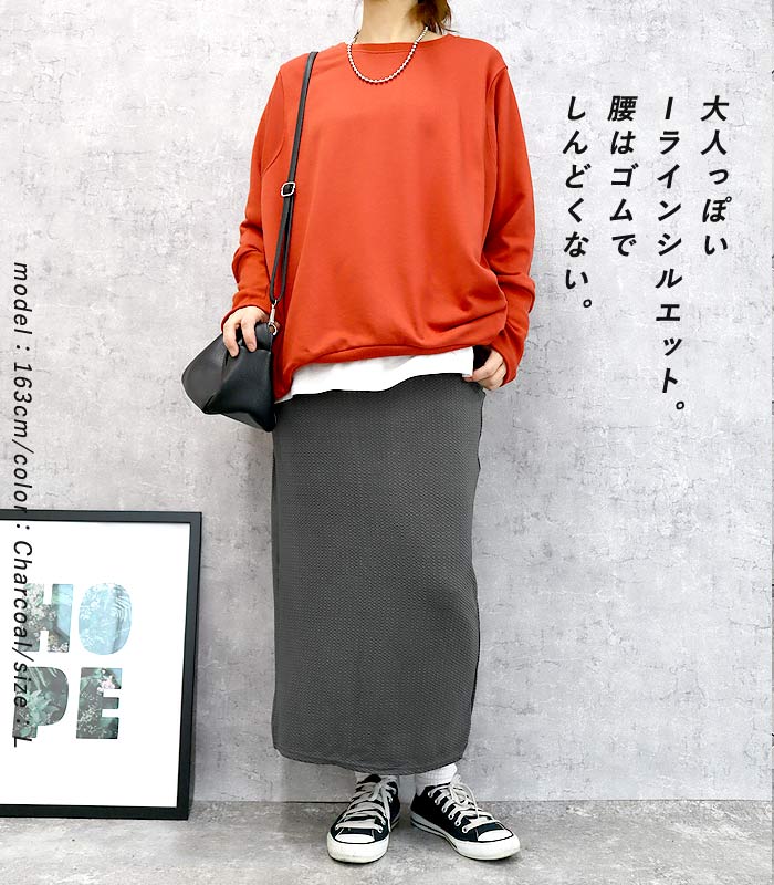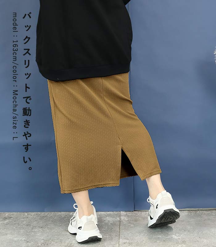新タイプ登場 エンボス加工 ロングスカート タイトスカート ウエストゴム 体型カバー 秋 [郵2]^b405-1^ ミディアムスカート