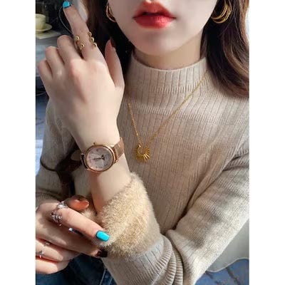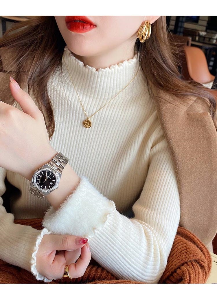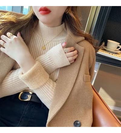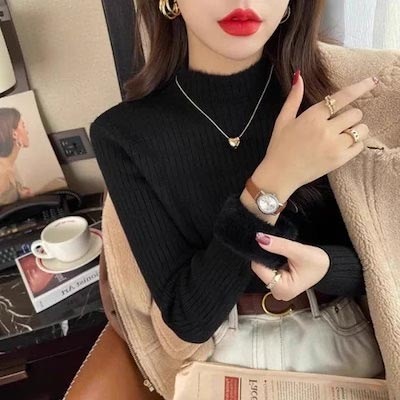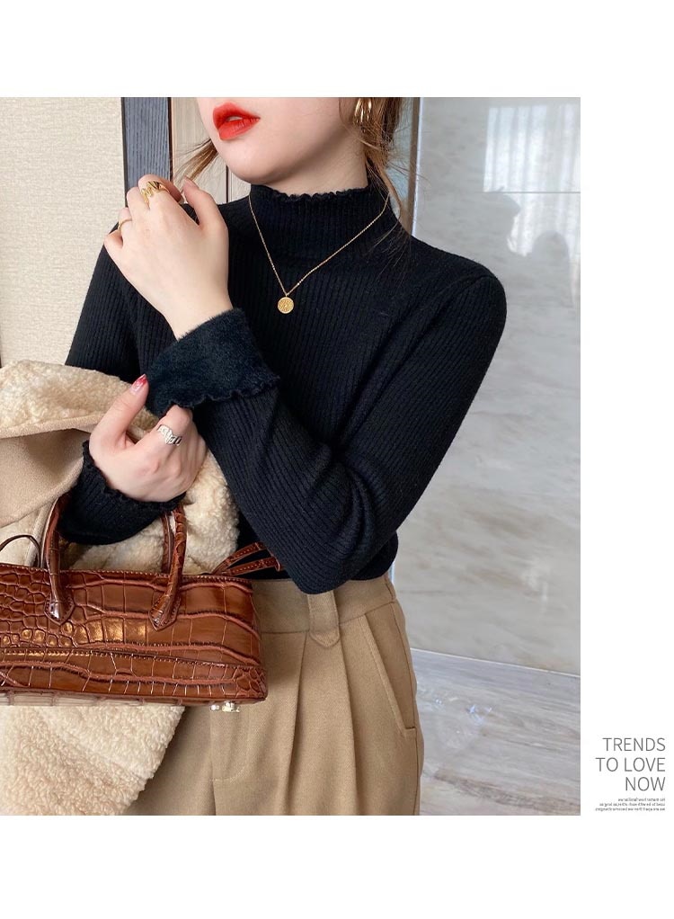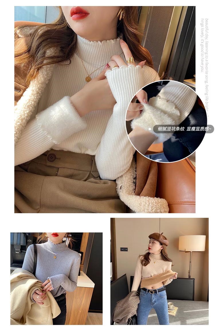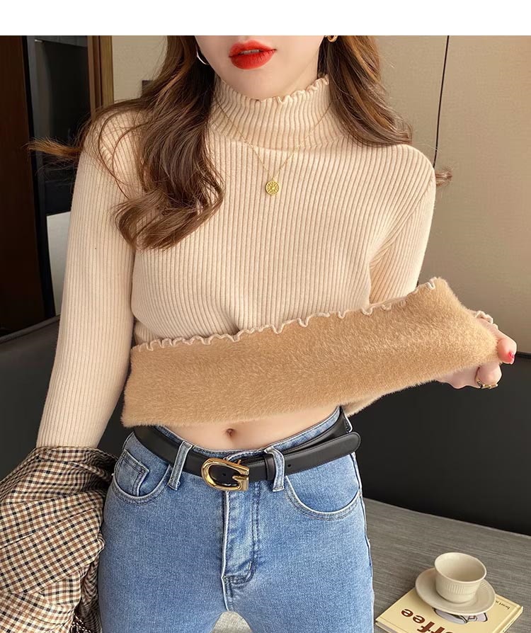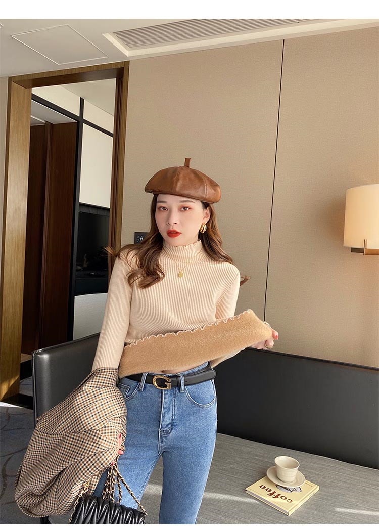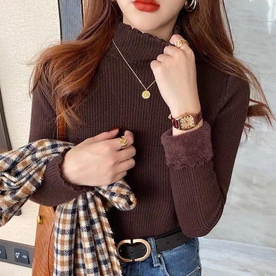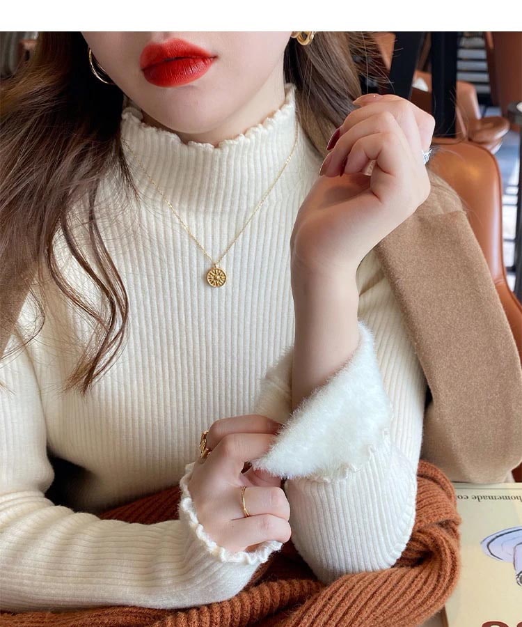 秋冬裏起毛4TYPEレディースカットソーニットセーター保温暖かい上質リブタイトシルエットストレッチカットソートップス