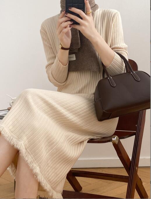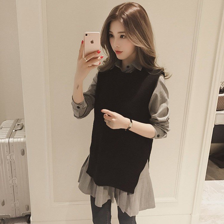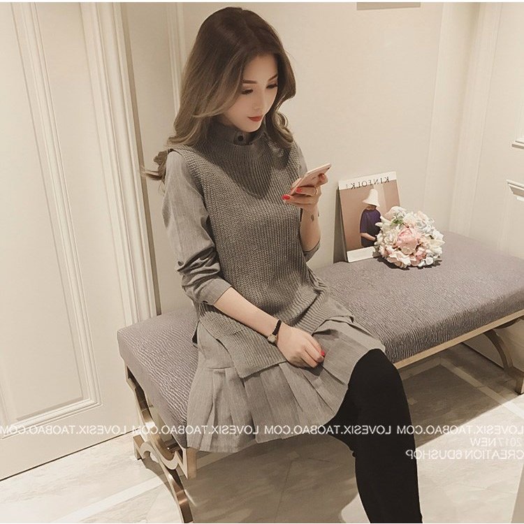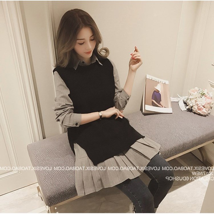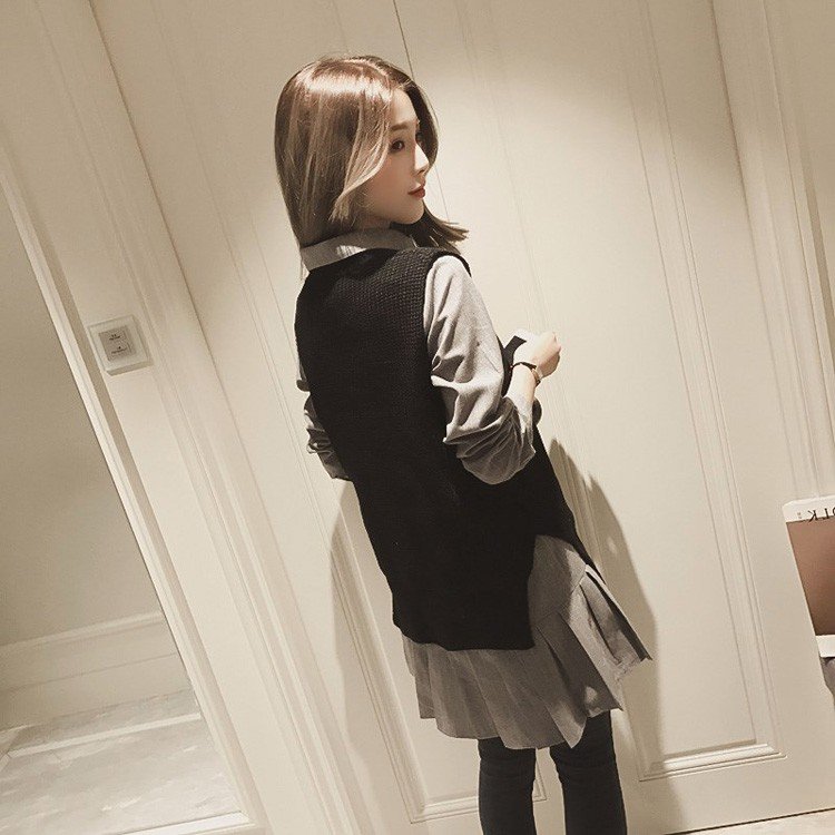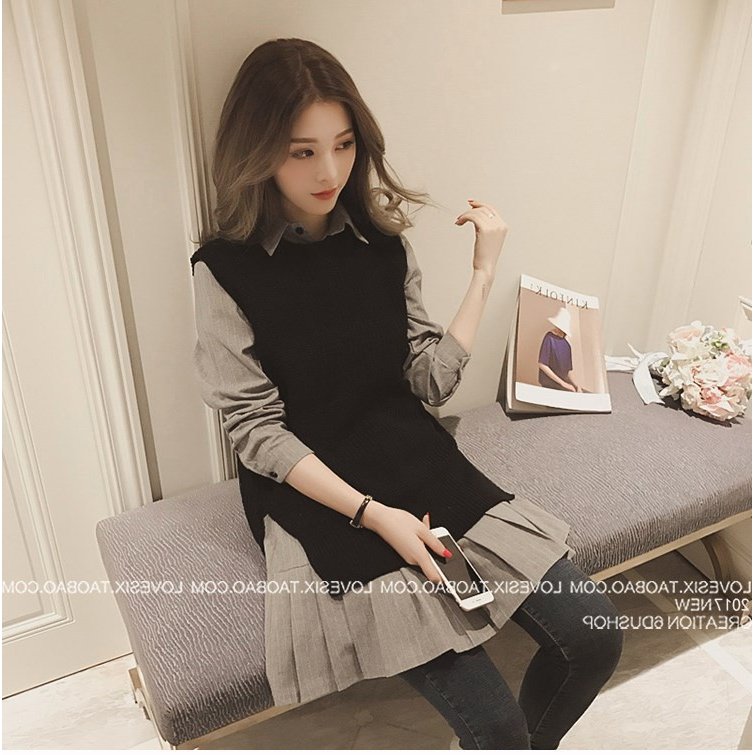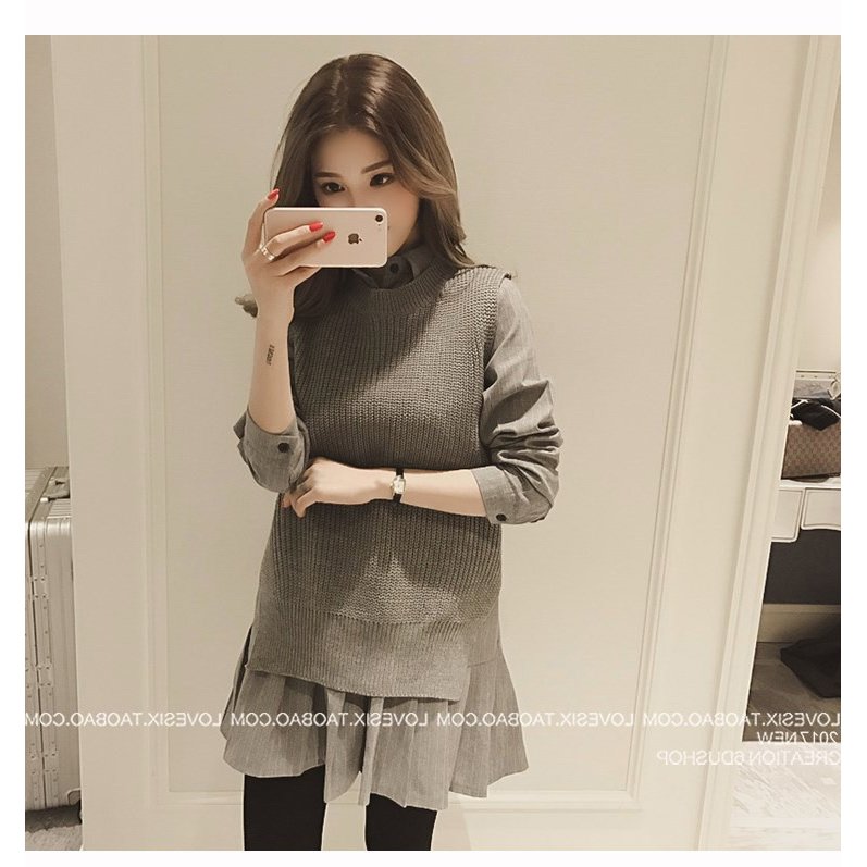 ワンピース レディース きれいめ 秋冬 膝丈ワンピース 長袖 シャツワンピ ニットベスト セットアップ 大きいサイズ オシャレ 大人可愛い 新作