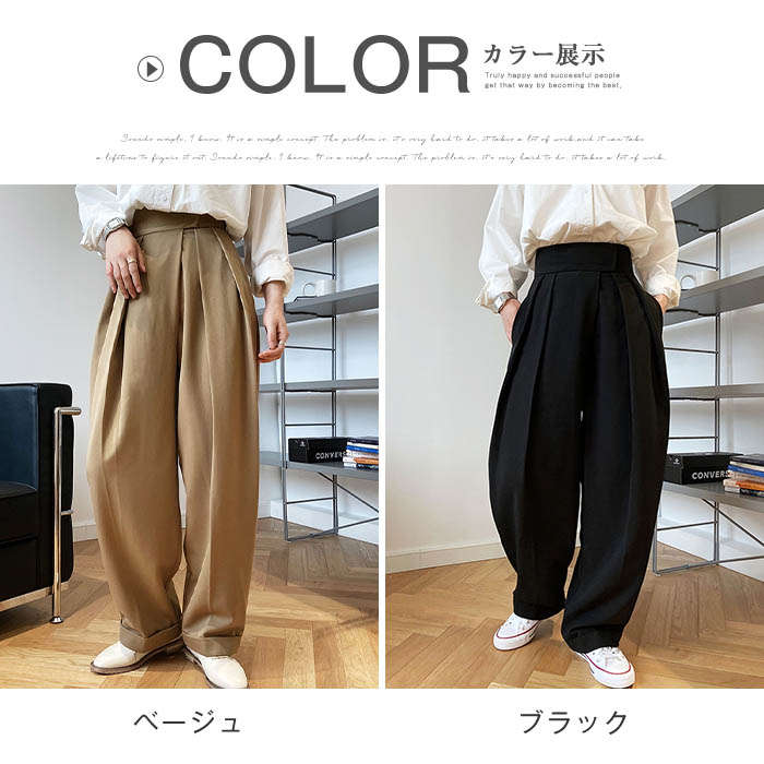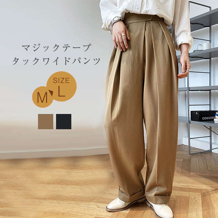 アンティカ ワイドパンツ レディース ボトムス パンツ タックワイドパンツ イージーパンツ ワイド アシンメトリー タック アンティカ スラックス ロング 美シルエット オリジナル タックパンツ ハイウエスト マ