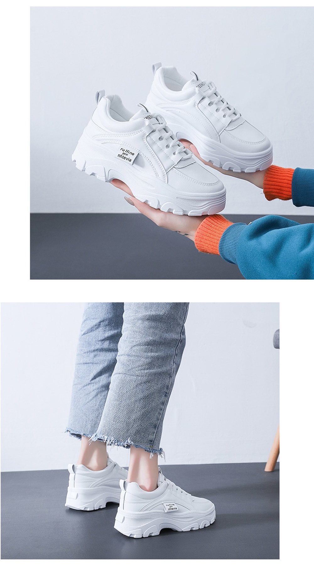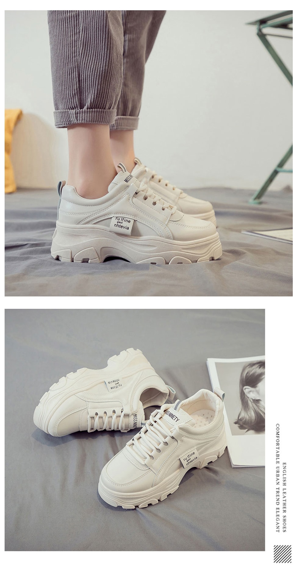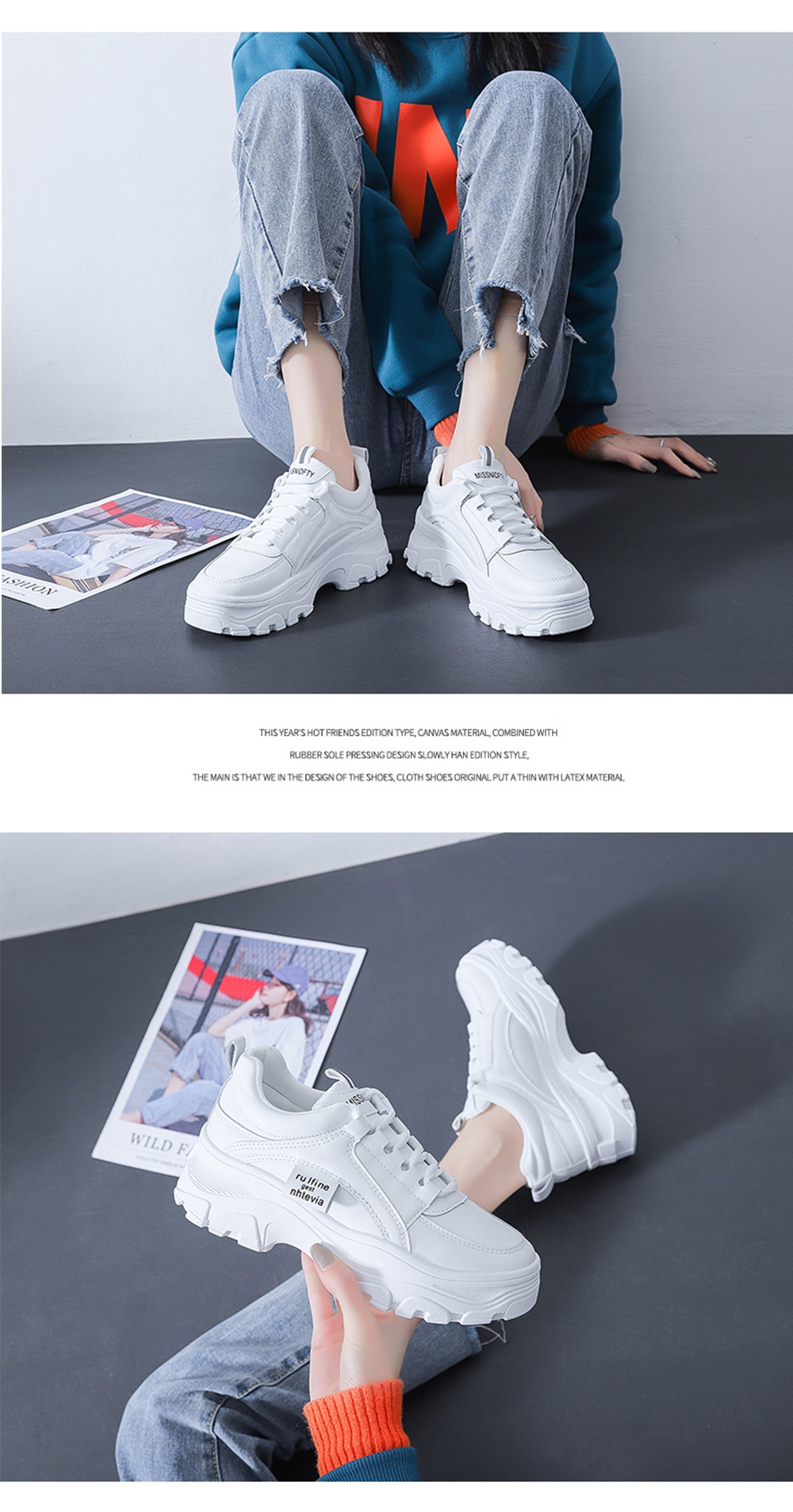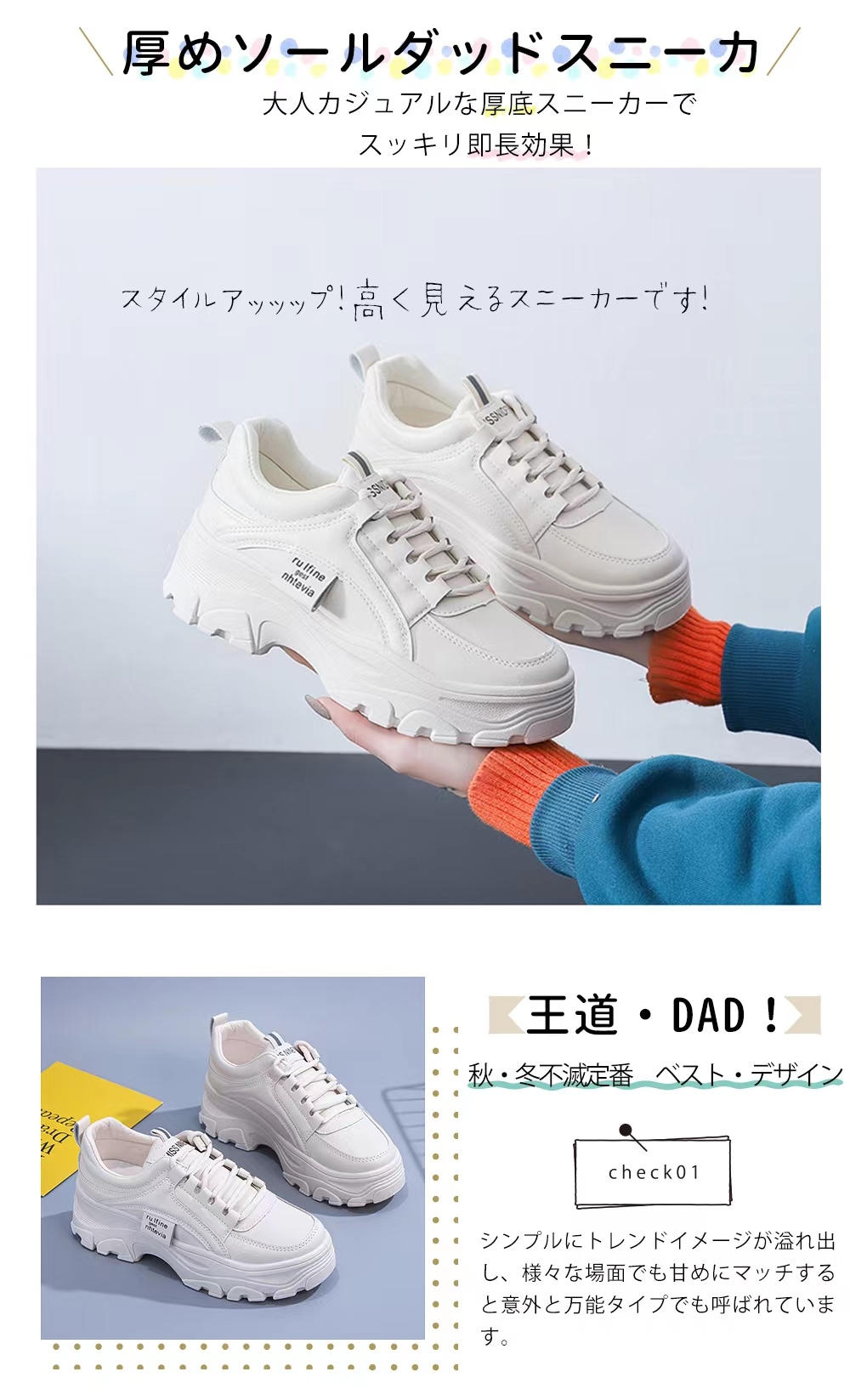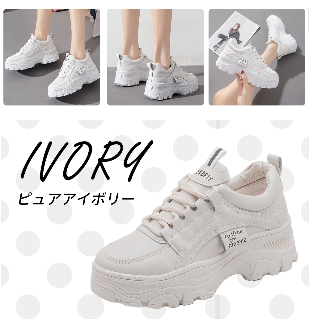 厚底 ダットスニーカー 美脚 スニーカー トレンド カジュアルシューズ 靴 レディース 通学 通勤 白 韓国靴 シューズ トレンド 運動靴ダッドスニーカー