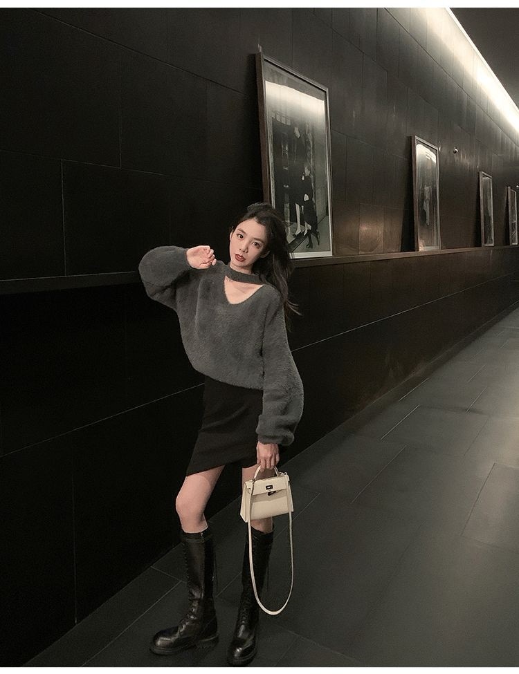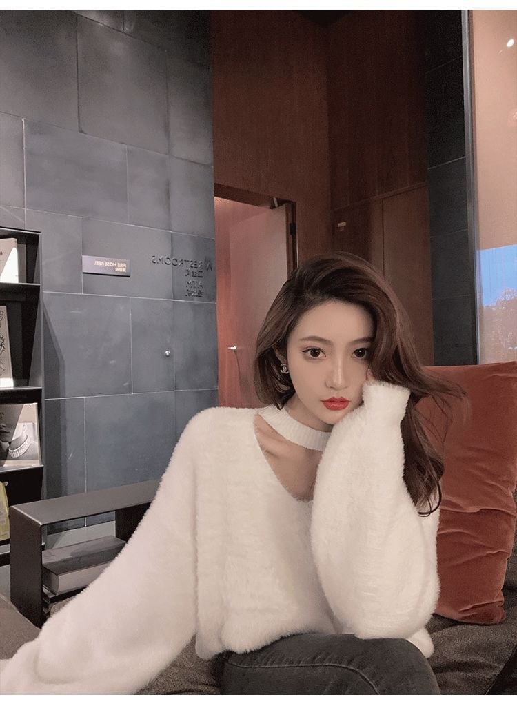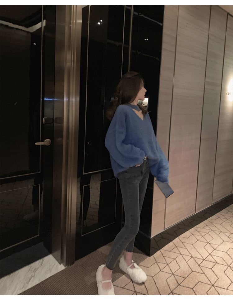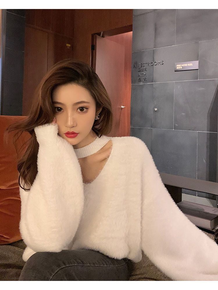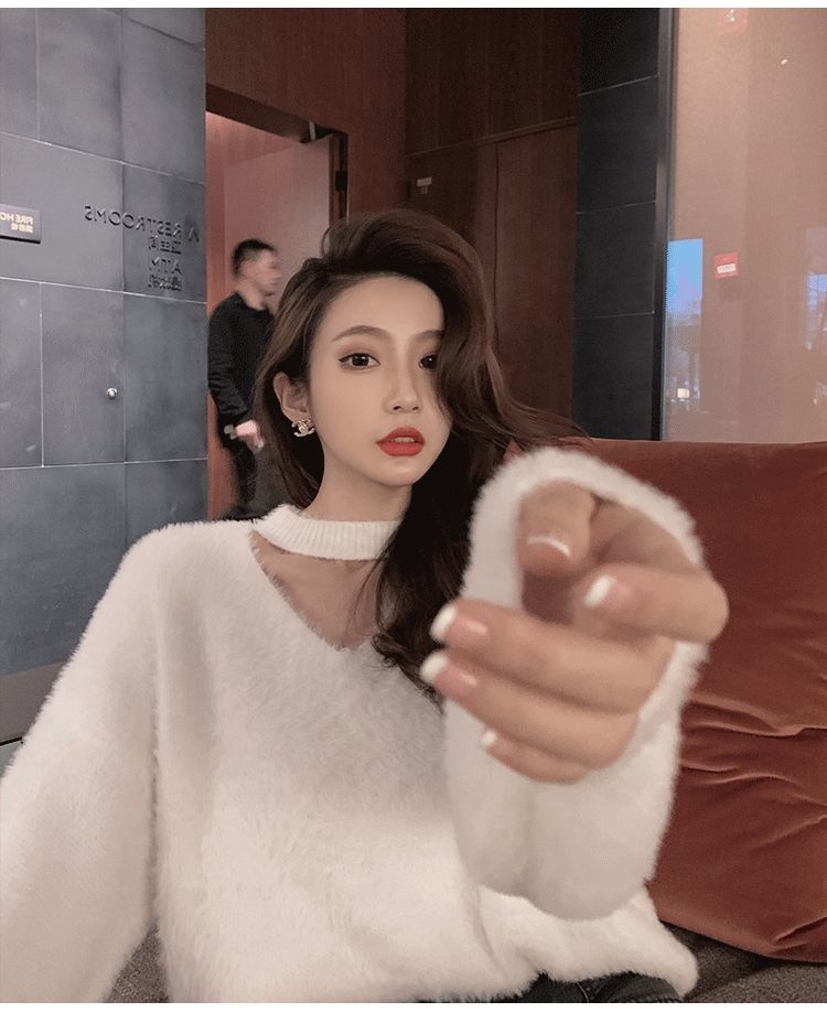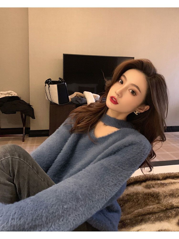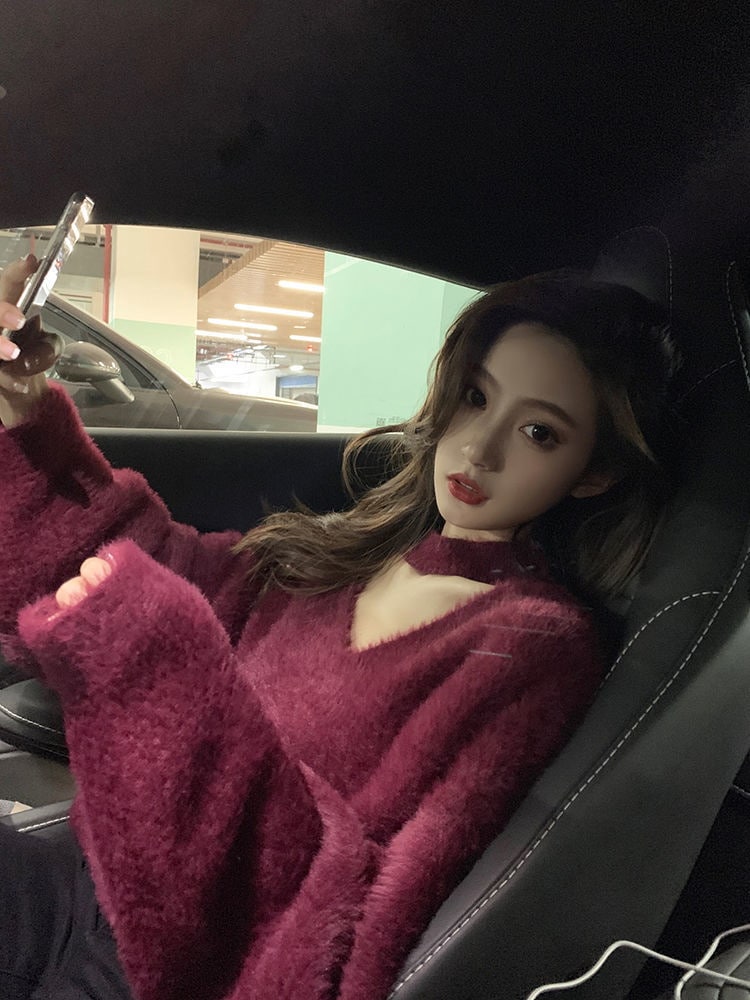 新しい やさしい セクシー レディース 怠惰な風 セーター レッド ミンク ウール ゆったり ニット1 ニット
