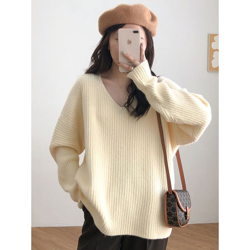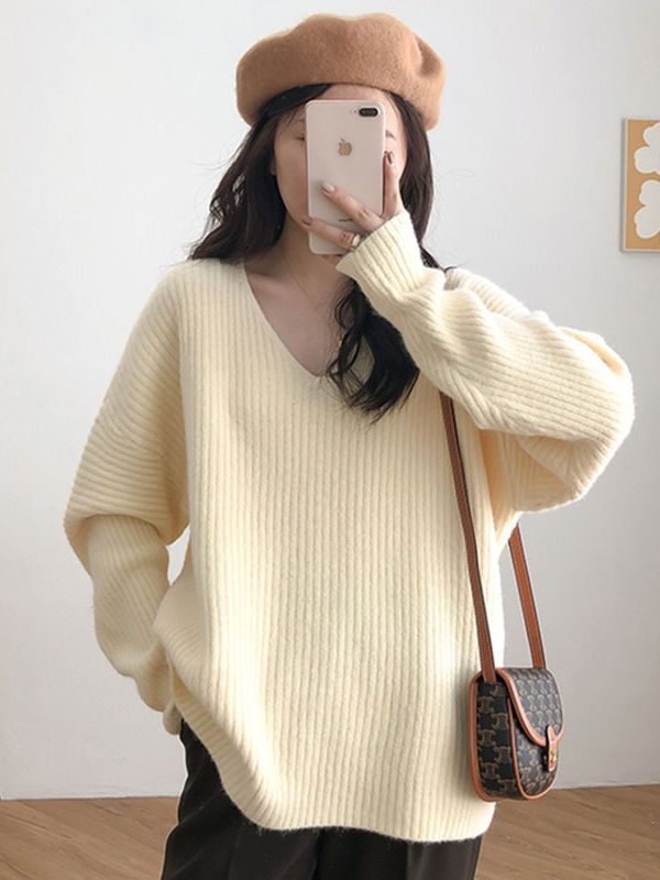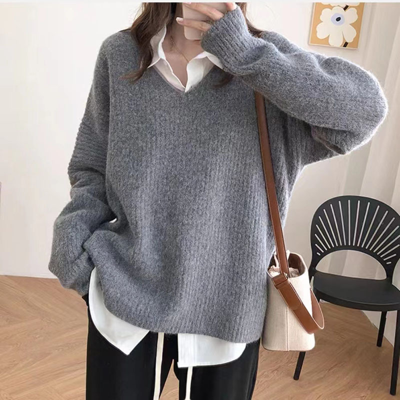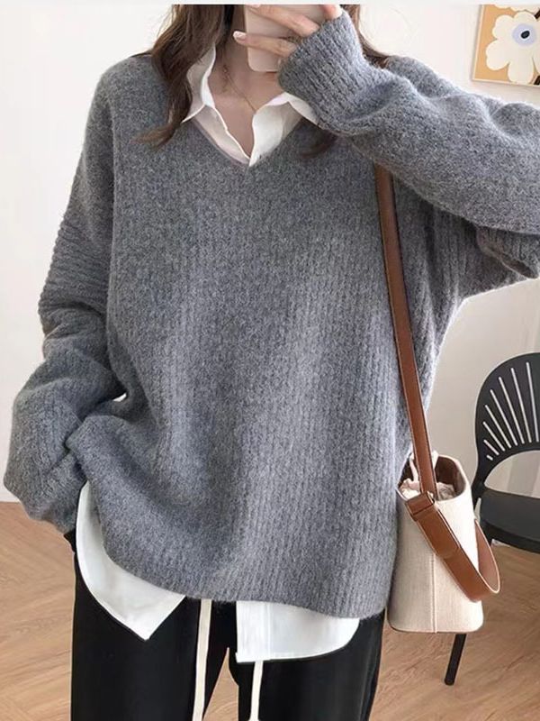 人気なリプニット ゆったり 怠惰な風 セーター レディース 重ね着ニットトップス Vネック 着やせ 韓国ファッション 長袖トップス カシミヤタッチ