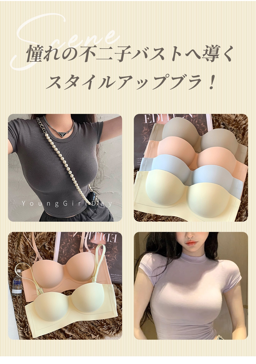 2枚で100円OFF もう手放せない スタイルアップブラ 下着 ブラジャー レディース ノンワイヤー ワキ肉 紐無しストラップレス 対応 大きいサイズ 盛れる もちもち シンプル