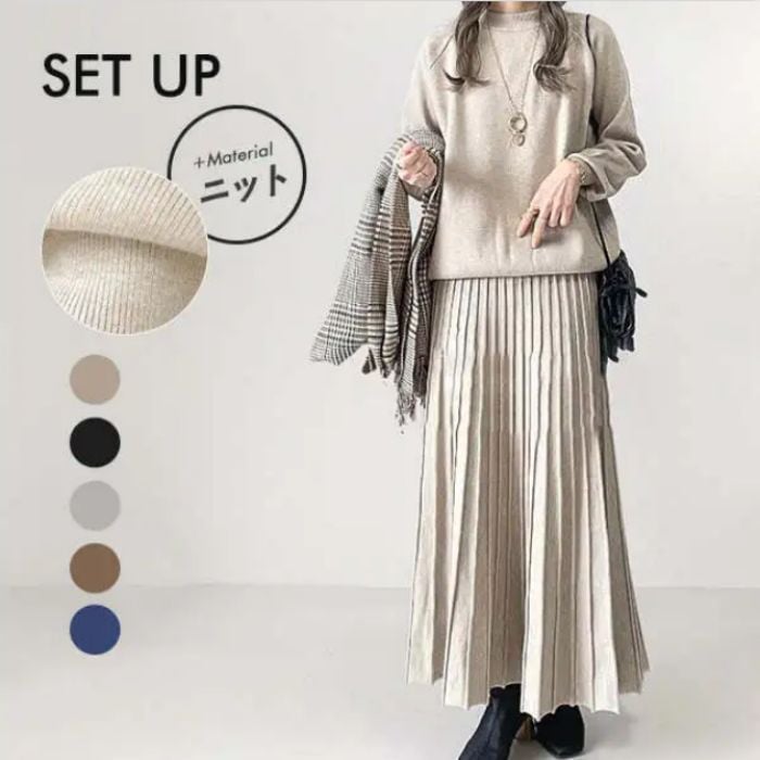 セットアップ レディース 長袖 セーター プリーツスカート ニット スカートセット ギャザー 秋冬 二点セット 無地7 セットアップ