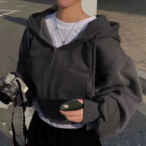 パーカースウェット長袖秋冬2024秋冬韓国insゆるいファッションファスナーと帽子コート短い単色の怠惰な上着レディース6色 パーカー