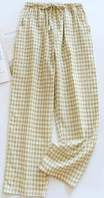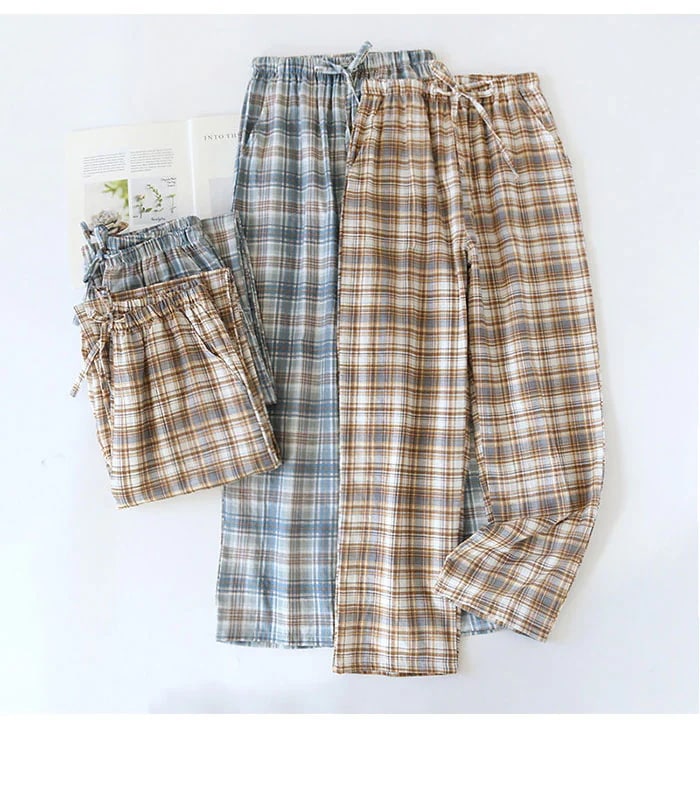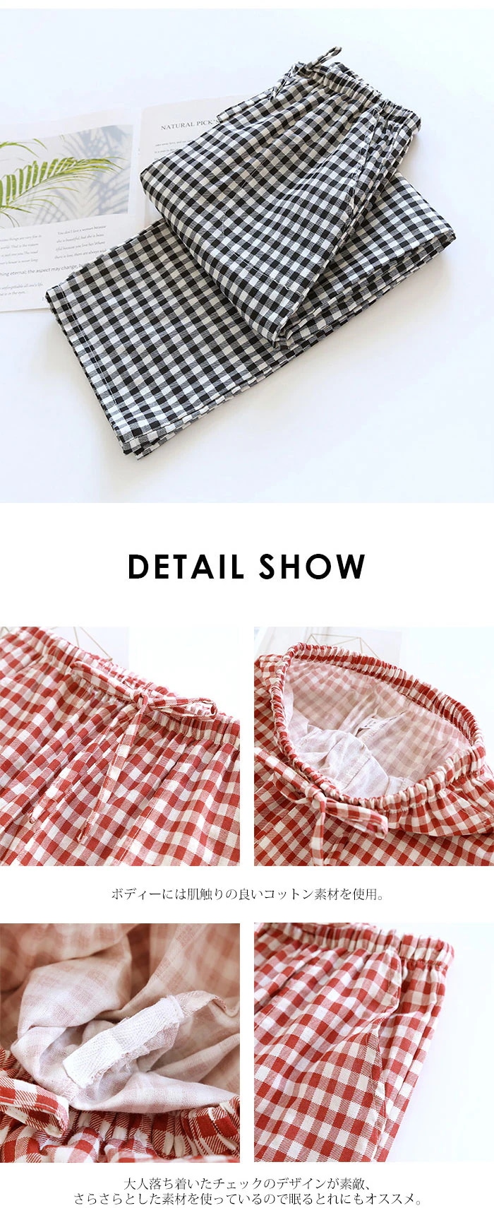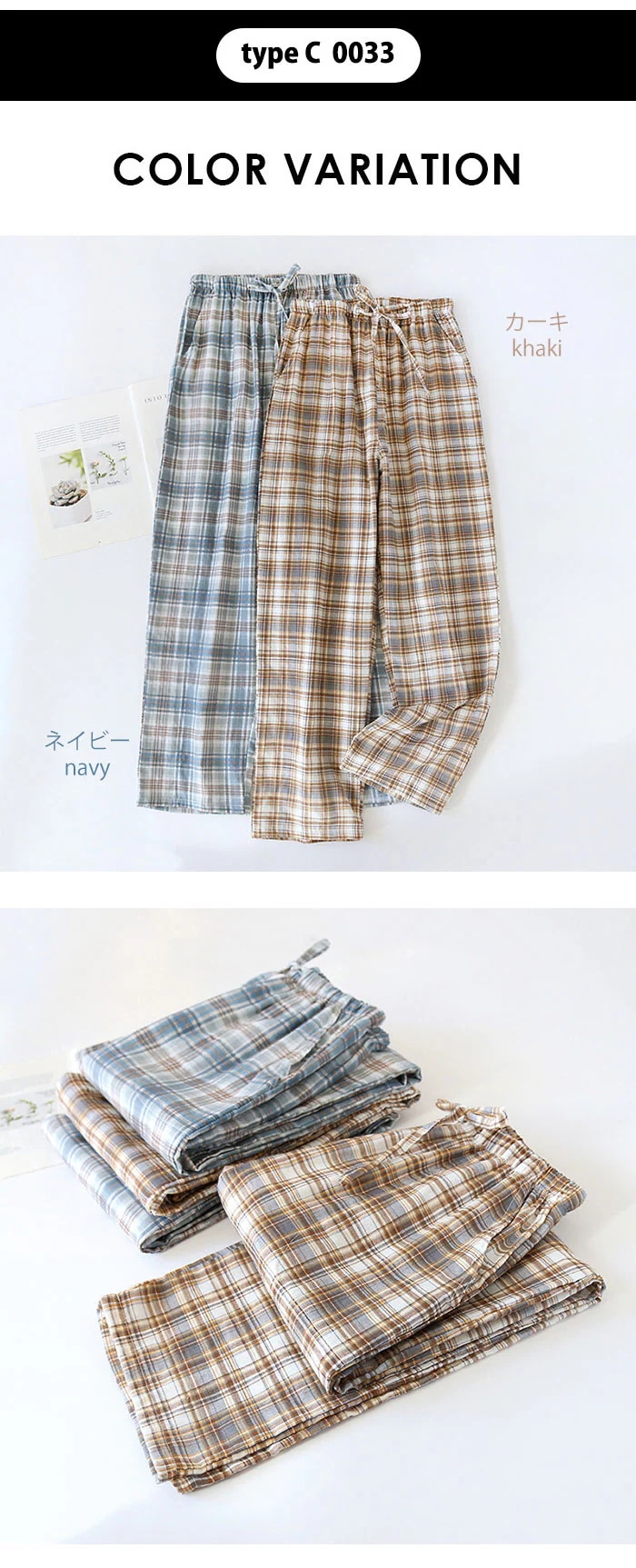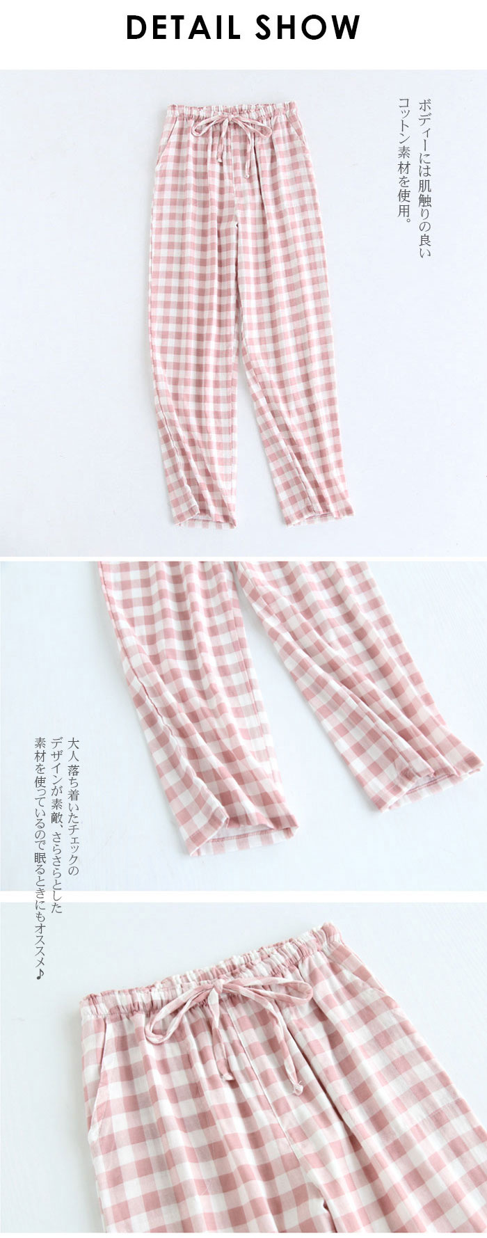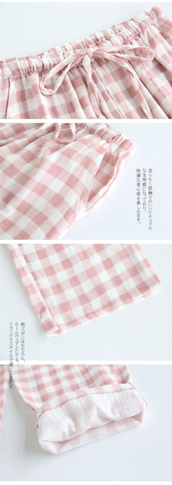 パジャマ パンツ 部屋着 ガーゼ素材 ズボン チェック 男女兼用 イージーパンツ ルームパンツ 綿100 薄手 スウェットパンツ ルームウェア 長パンツ ロングパンツ入院 ペアルック