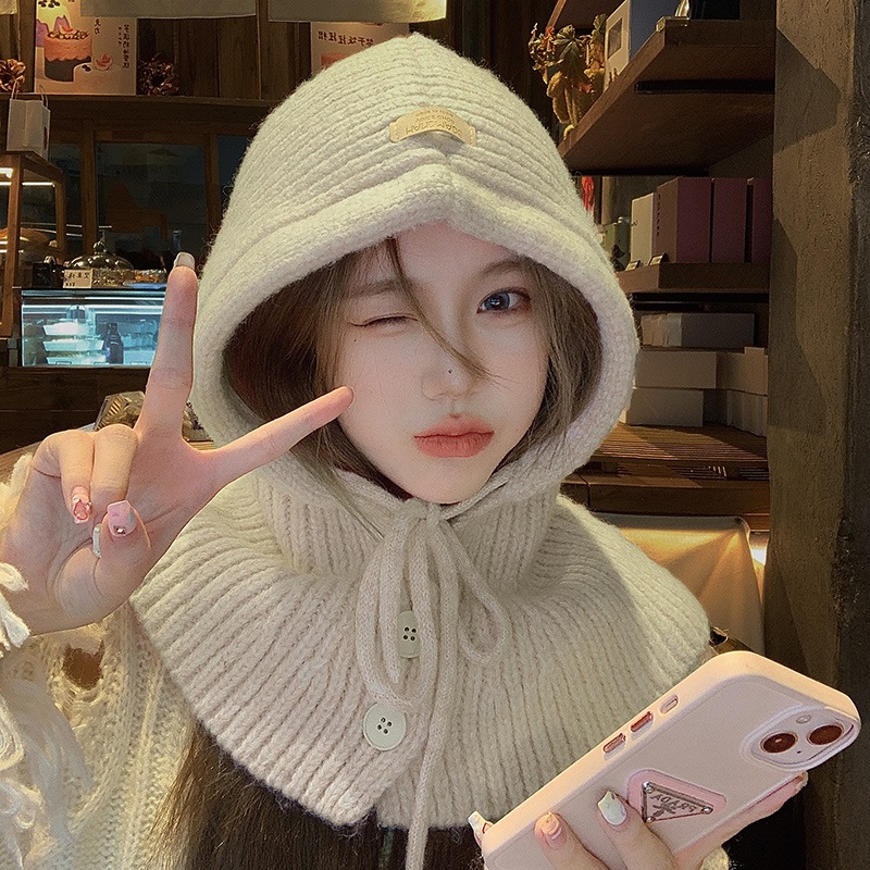 大きい頭の周りのバラクのラフの帽子の女性の秋冬の新型のニットの帽子のマフラーの一体の保温の耳の毛糸の帽子 ニット帽
