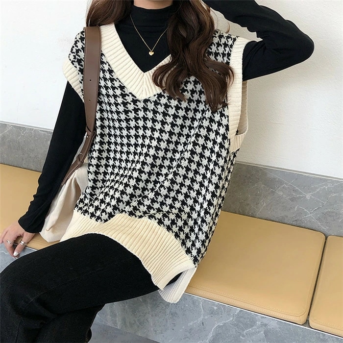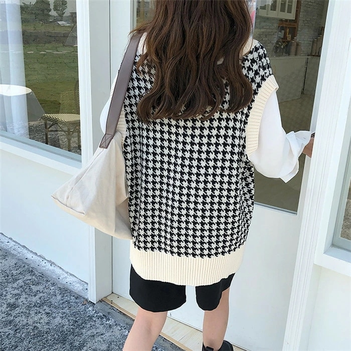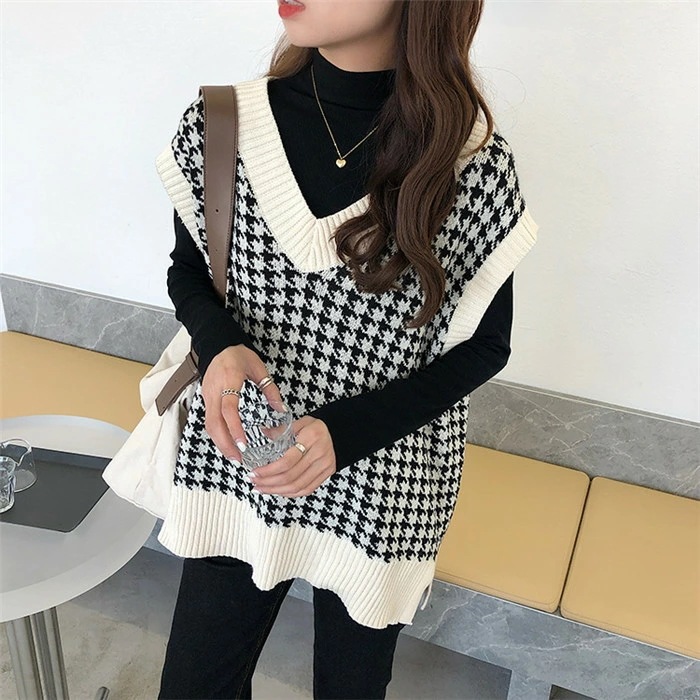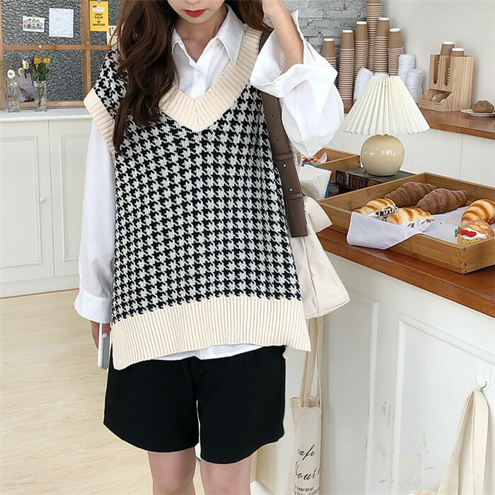 二ットベスト ニットタンクトップ 千鳥柄ベスト レディース ニット タンクトップ トップス 重ね着 ベスト ノースリーブ タンク レイヤードレイヤード風ト 千鳥柄 ニットタンクトップ シンプル 春 秋