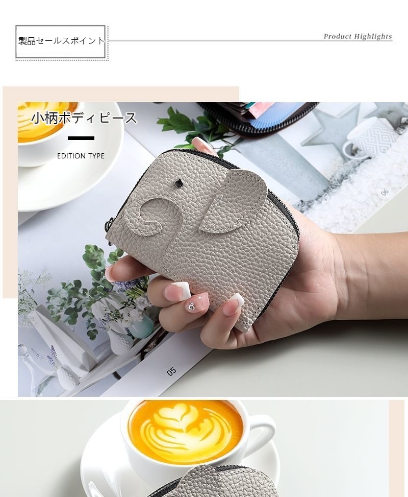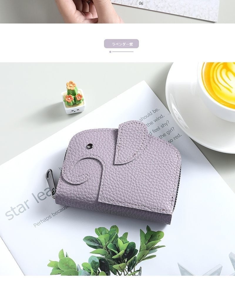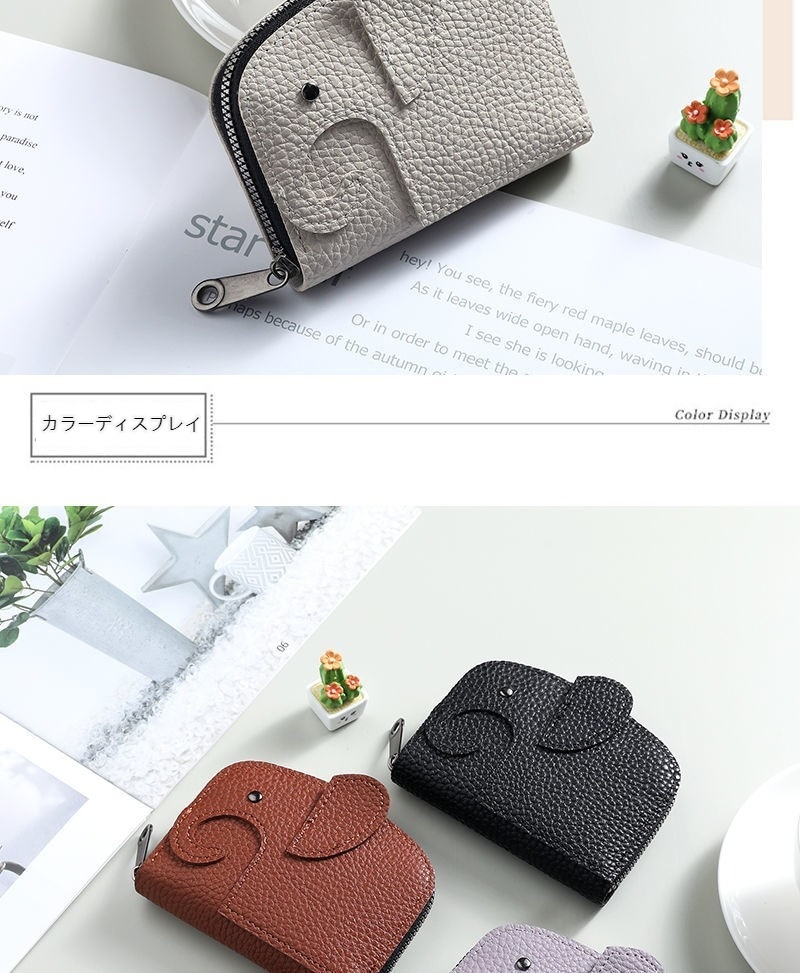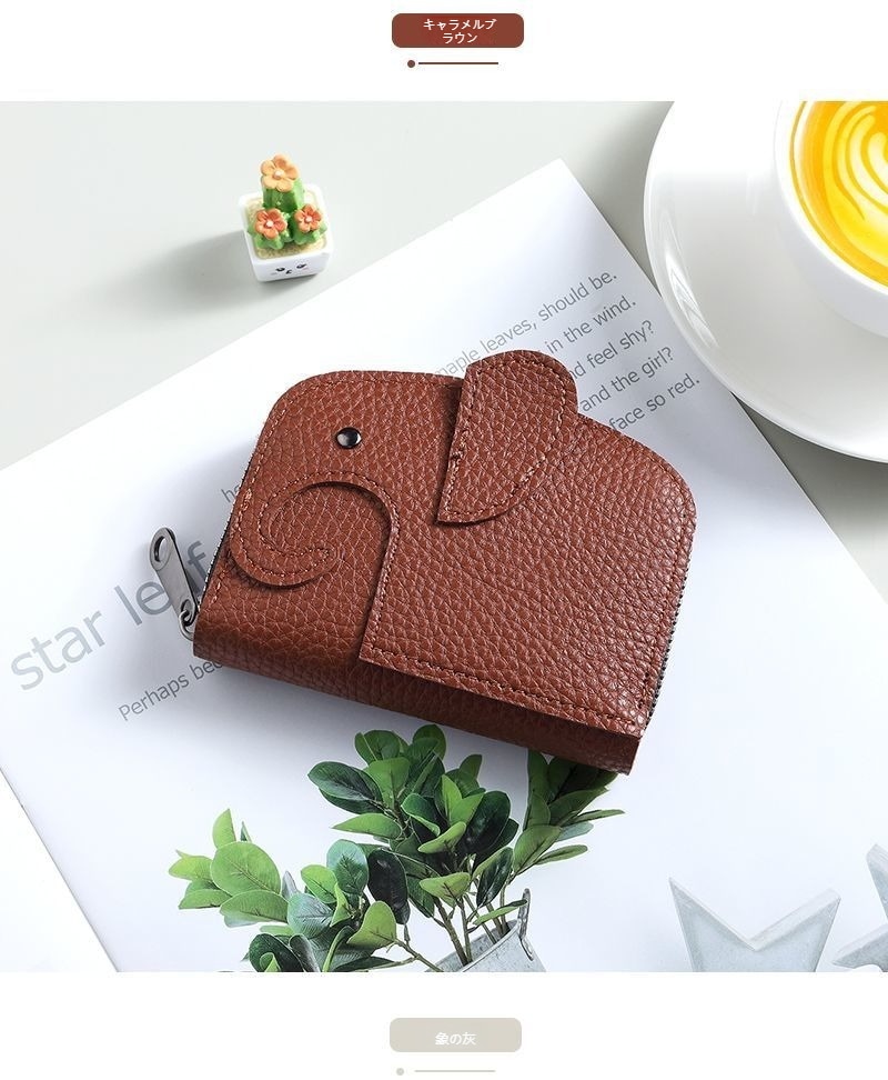 本革ぞうさんカードケース ゾウ 財布 レザー マルチケース キーリング付き 小物入れ 牛本革 ポケット 薄型 象 動物 ゾウさん カード入れ ミニ財布 小銭入れ 収納 動物 アニマル 小銭入れ 収納