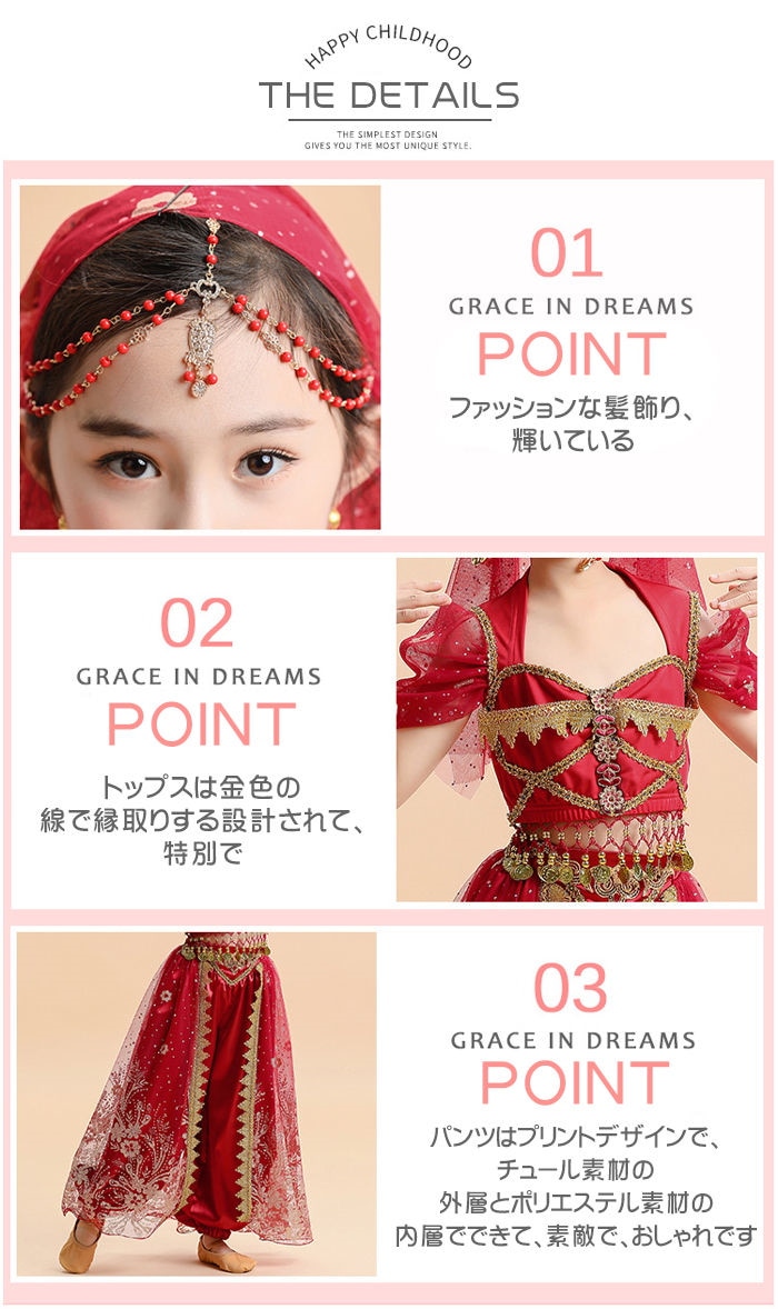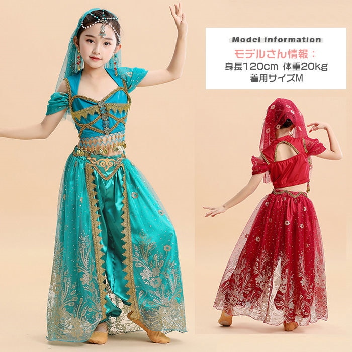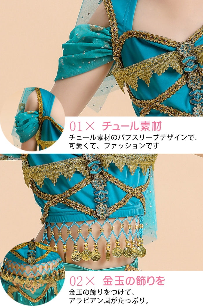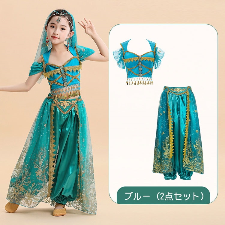 ジャスミン コスプレ 子供 ベリーダンス 衣装 子供 アラビアン 衣装 ハロウィン 衣装 子供 女の子 セットアップ コスチューム ハロウィン仮装 コスプレ クリスマス 練習着 レッスン着 半袖トップ