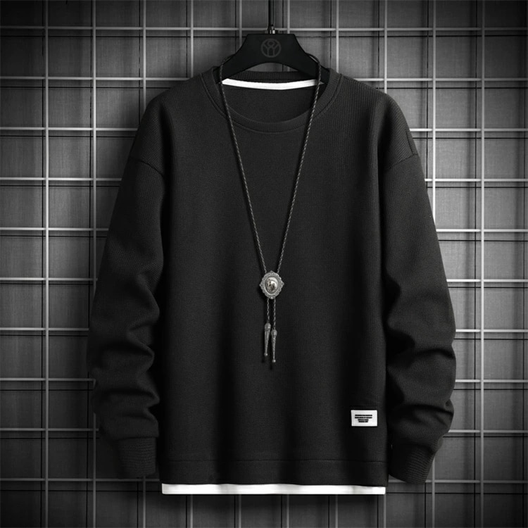 ワッフル ロンT メンズ プルオーバー 長袖Tシャツ 裏起毛 無地 tシャツ カジュアル クルーネック 重ね着風 Tシャツ ロングTシャツ ティーシャツ おしゃれ