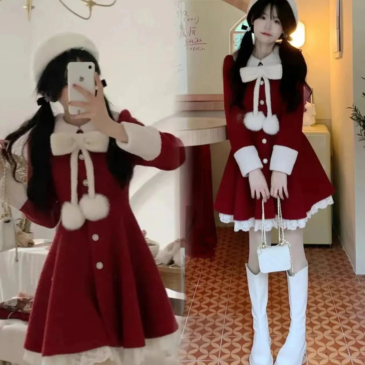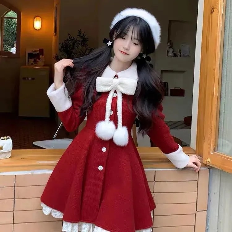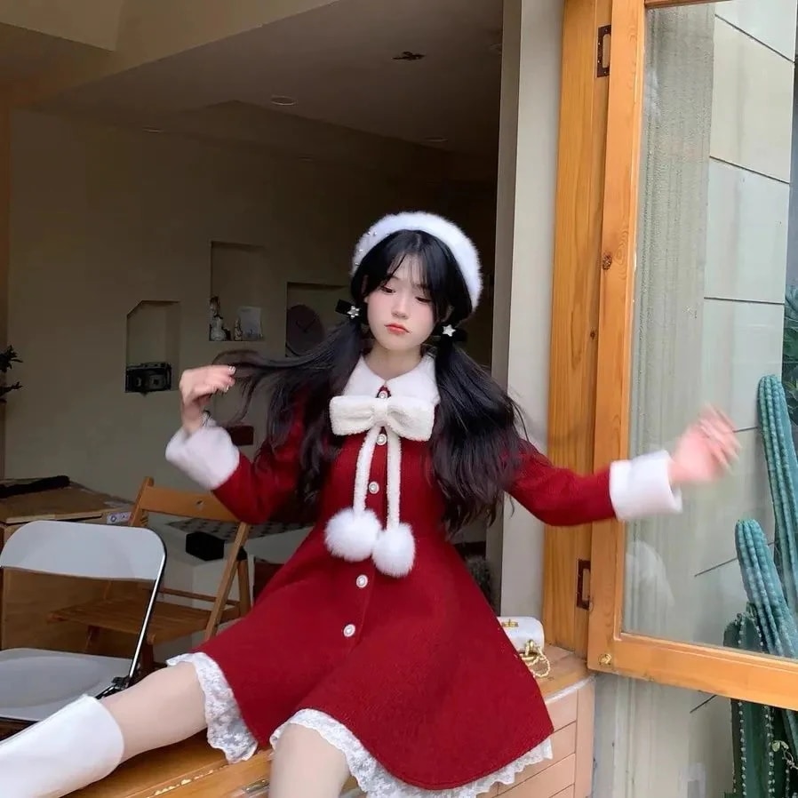 クリスマスワンピース 蝶結び レース ショートワンピース セットアップ レディース 少女 高校生 ワンピース サンタクロース クリスマス コスプレ サンタコスプレ サンタコス メガ割 2