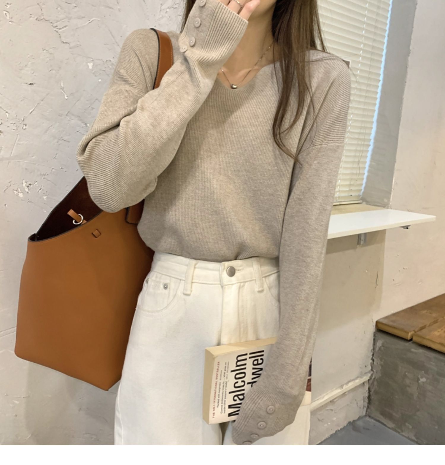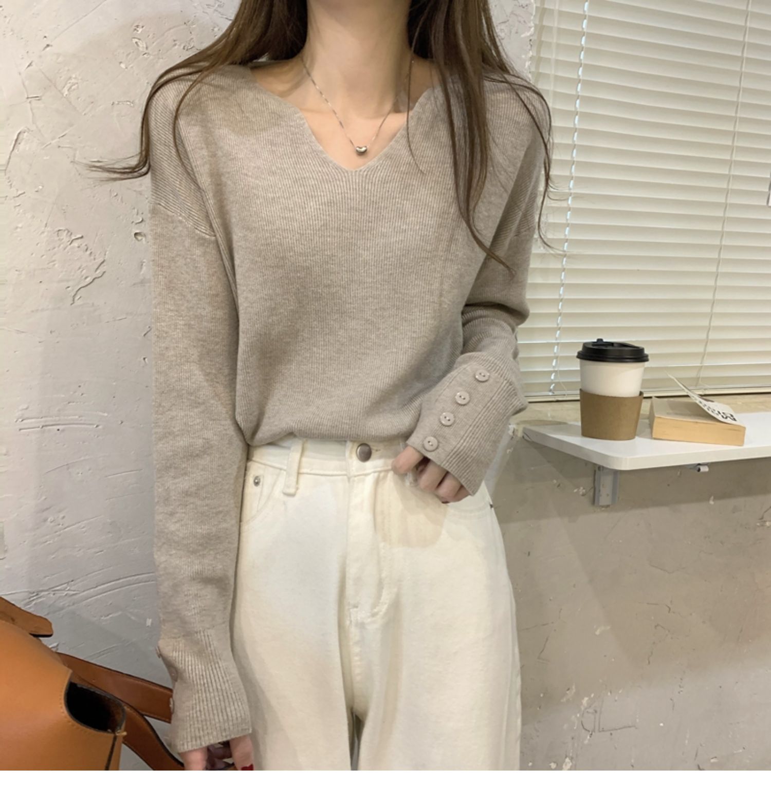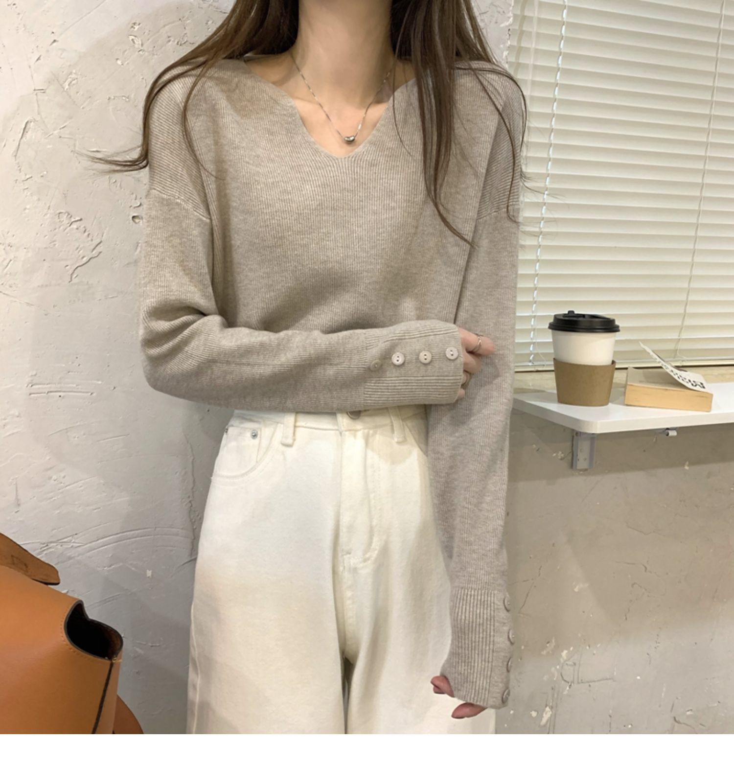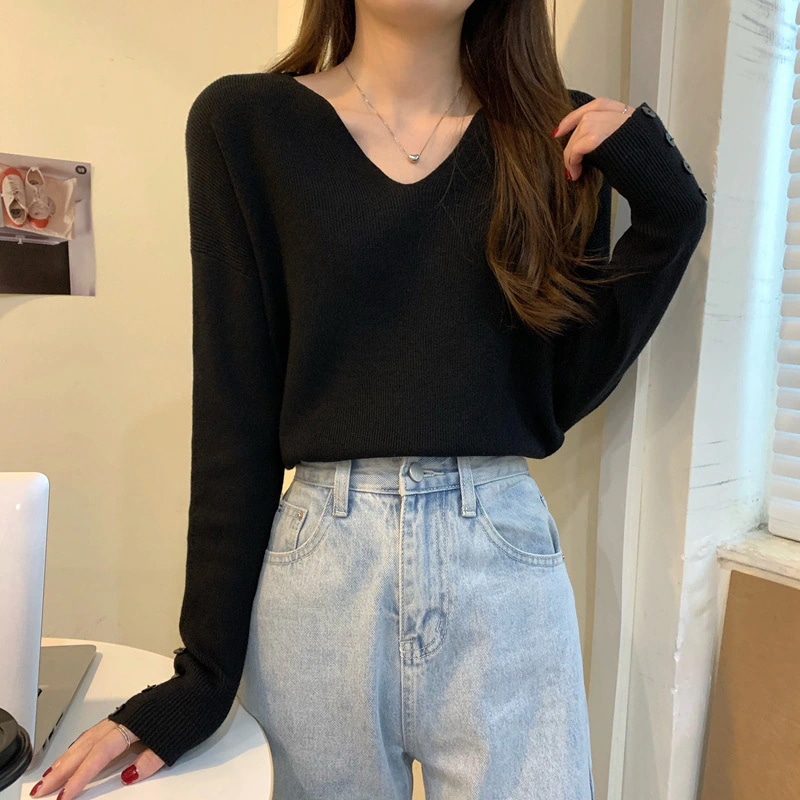 韓国ファッション秋冬人気なリブニット ニットセーター 百掛けトップス ニットインナーVネック ベーシックニットゆったりスウェット 長袖 無地