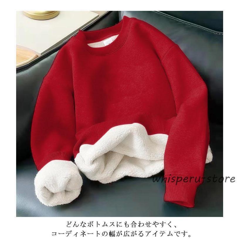 トレーナー 裏起毛 防寒 暖かい 長袖 体型カバー 裏ボア カジュアル 冬 プルオーバー レディース 裏起毛トレーナー トレーナー 丸首 あったか ト