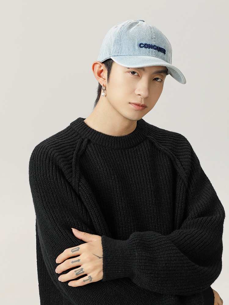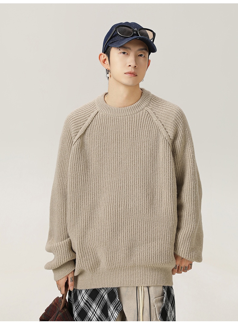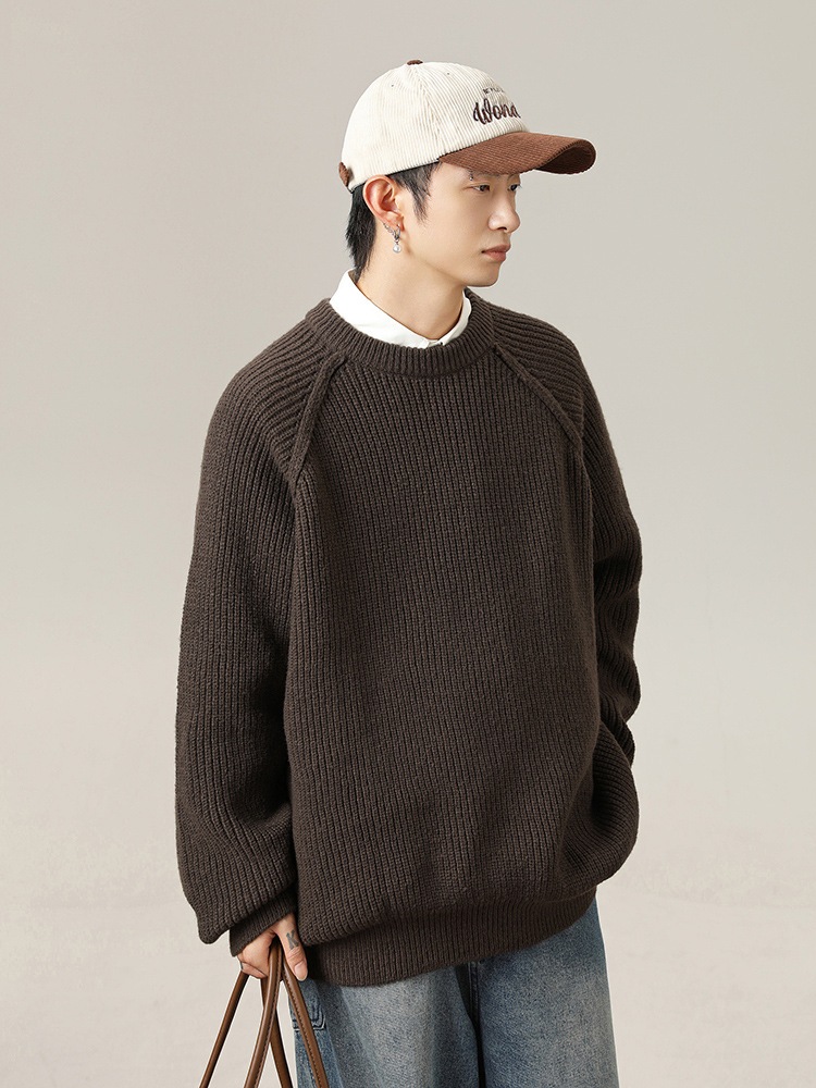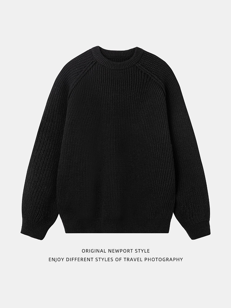 立体的なショルダーラインデザインラウンドネックジャンパー秋冬モデル太い針の質感無地ニットレトロルーズジャケット ニット セーター