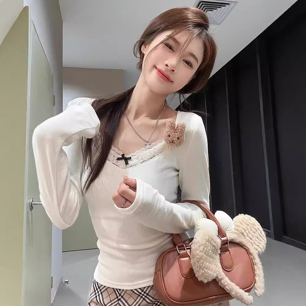 あったかボトムスシャツ長袖女性秋冬スリムインナー厚手トップス チュニック