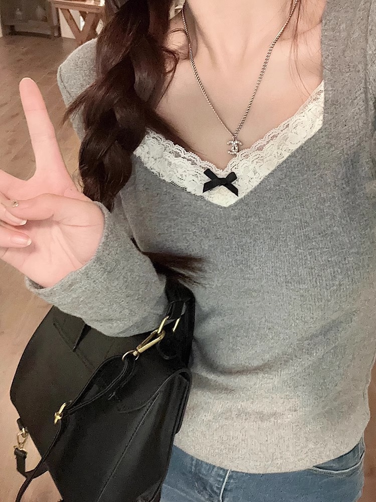 シアースリーブ ドッキングシャツ ボウタイシャツブラウス