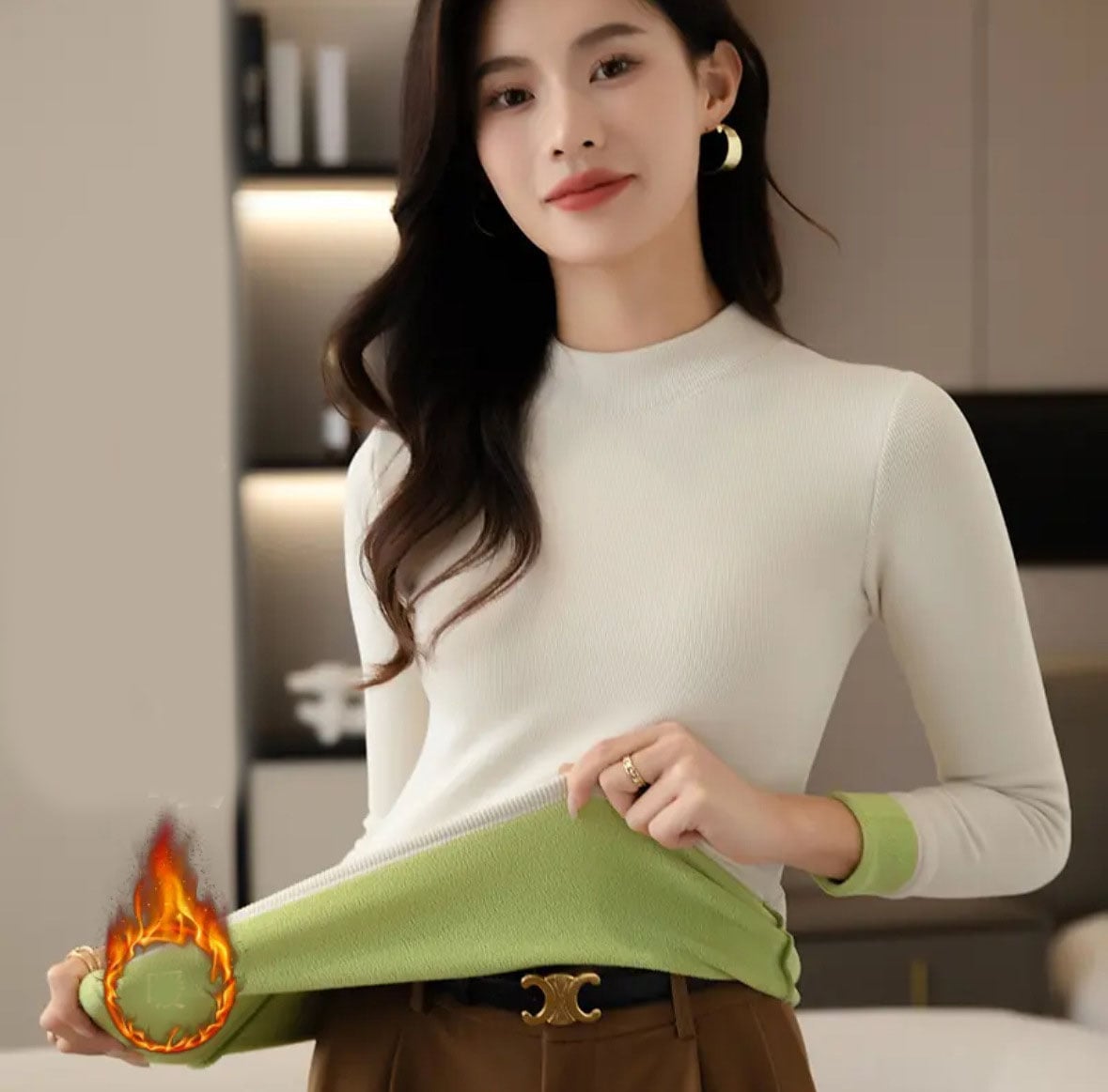 裏起毛 タートルネック ニット レディース トップス 秋冬 長袖 リブ袖 カットソー インナー シンプル フィット 暖かい 厚手 防寒 起毛