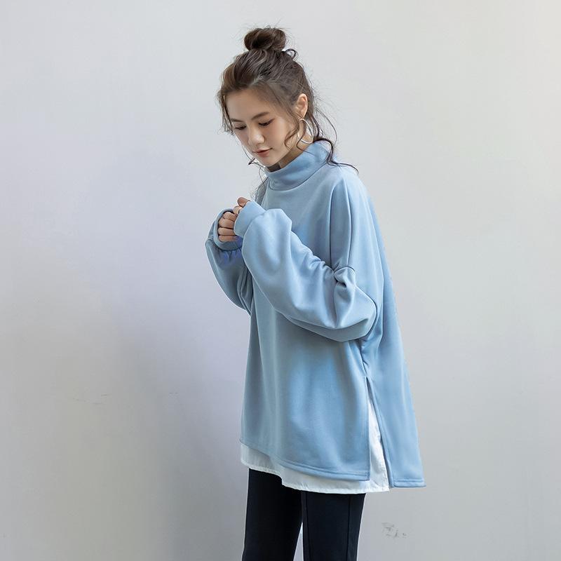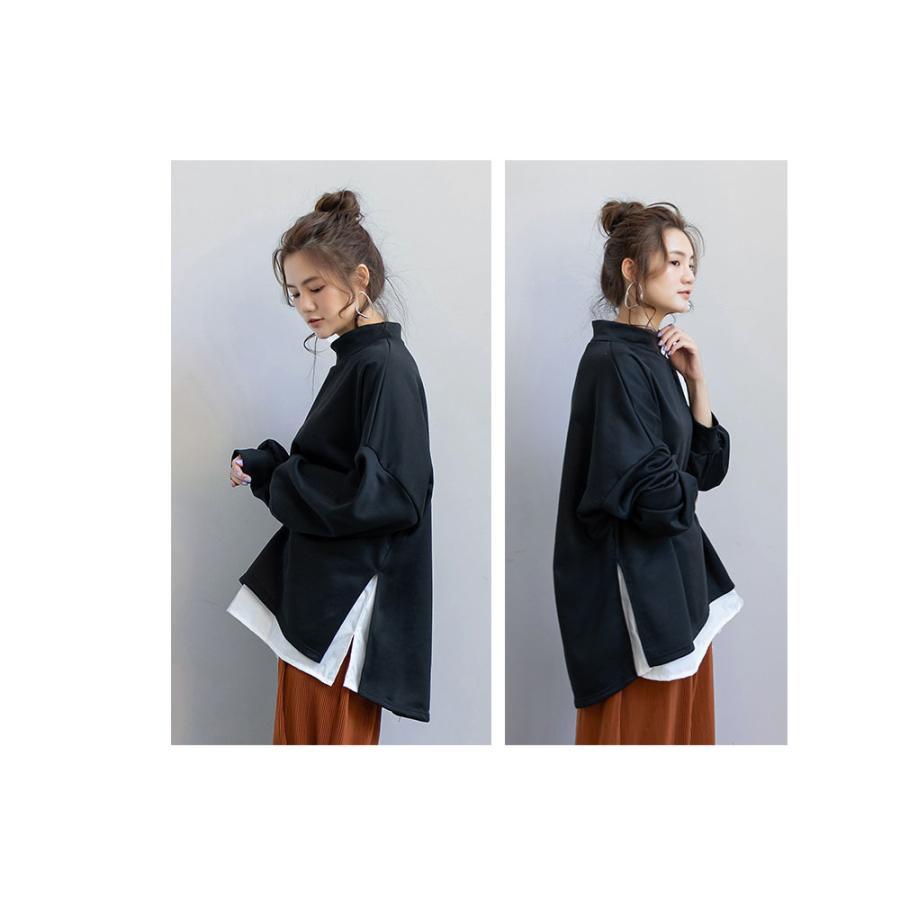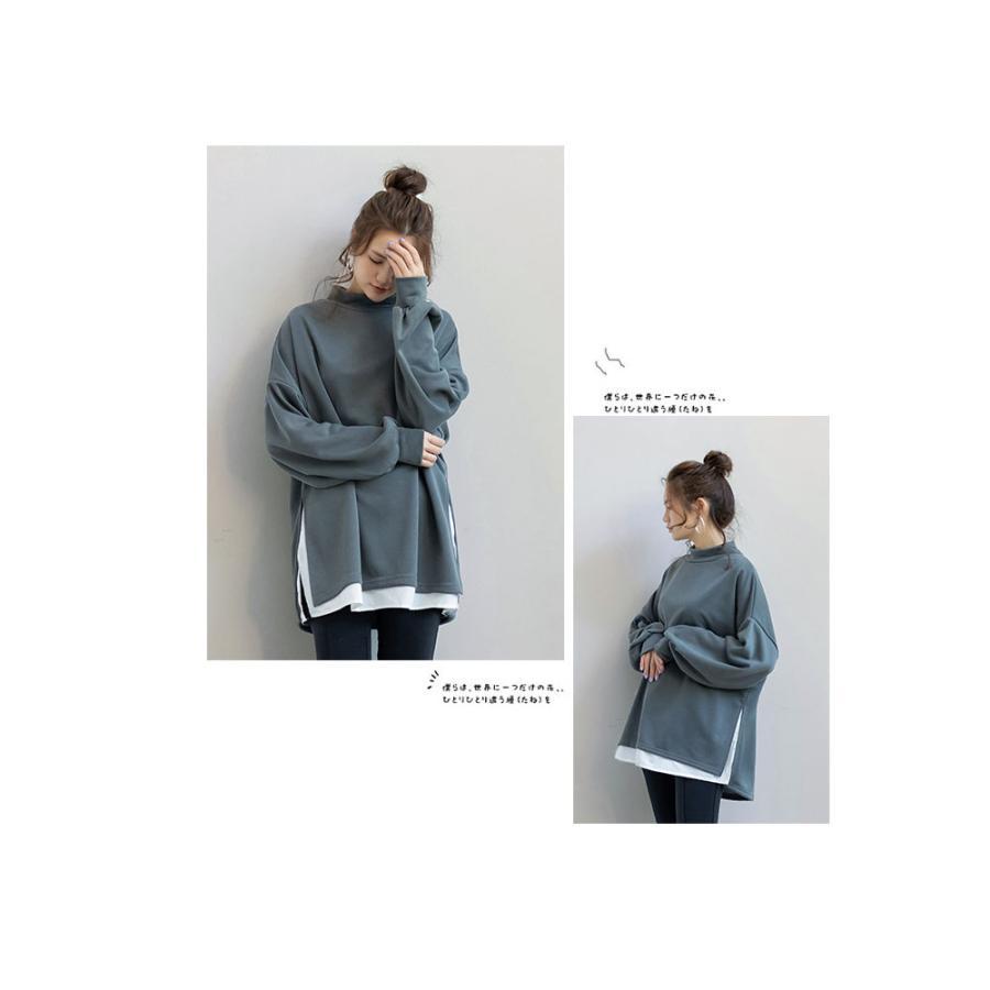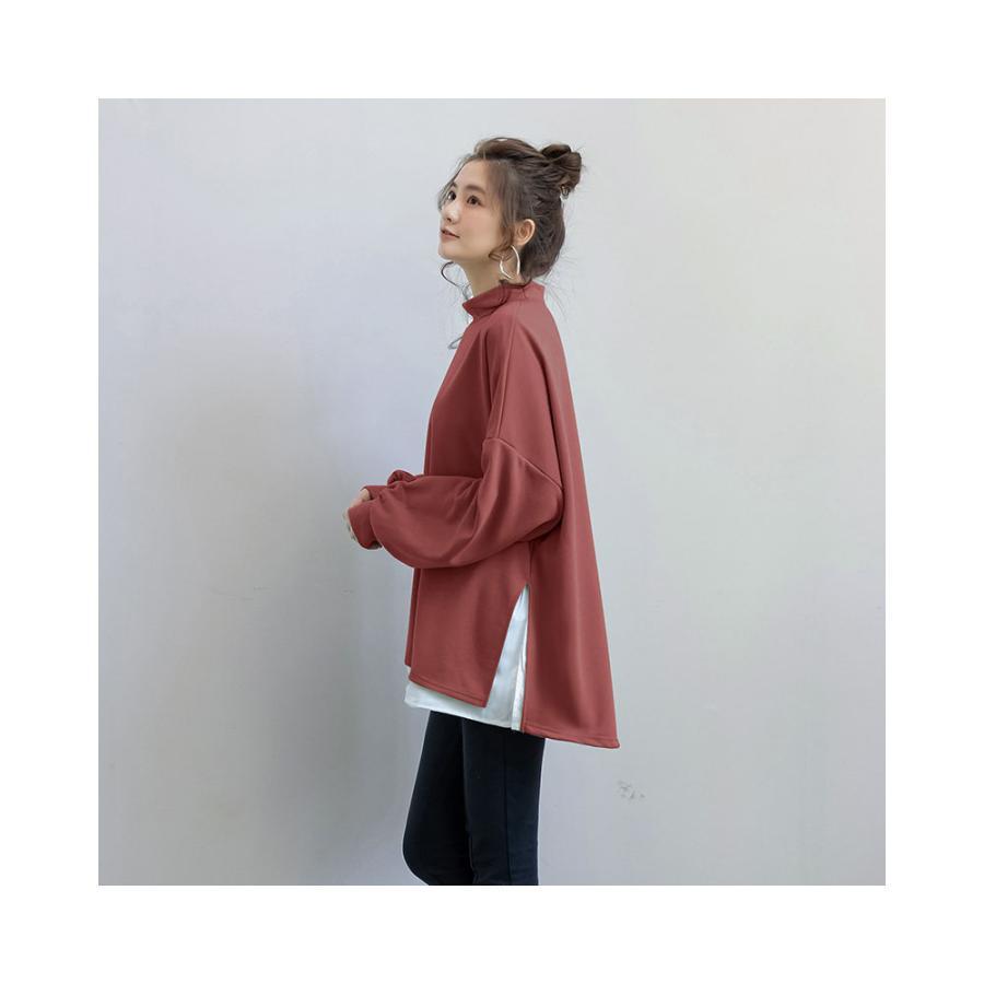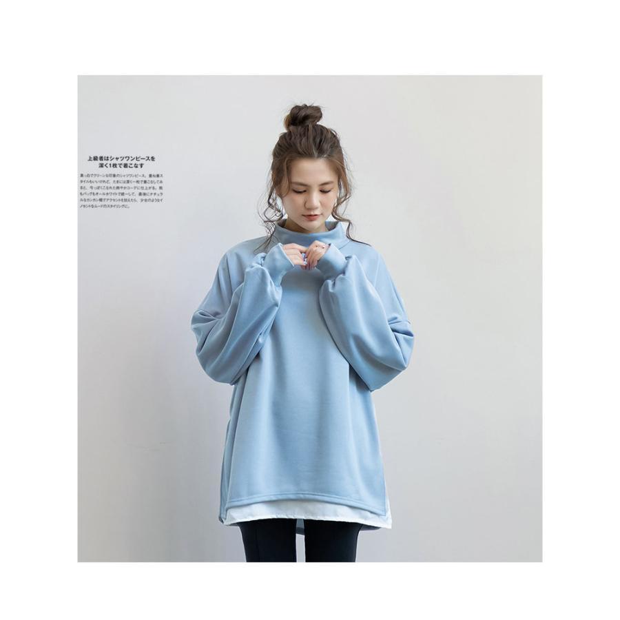 Tシャツパーカー裏起毛ブラウスゆったり 長袖春秋冬用無地シンプル通勤韓国ファンショントップス Tシャツ カットソー