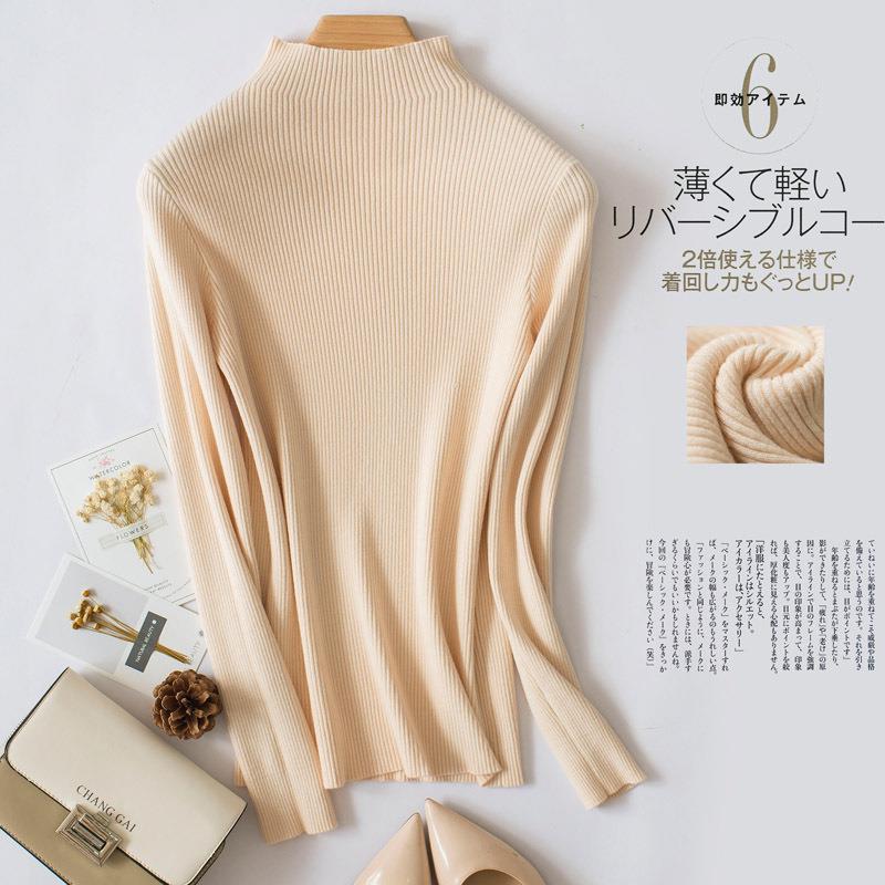 韓国ファッション ニット カシミヤタッチ トップス ニット インナー ベーシックニット ゆったりスウェット リブニット ニット