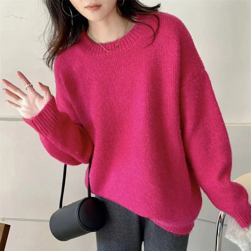 流行り 韓国ファッション 怠惰な風 ブルーニットセーター レディース カジュアル百掛け ニットトップス 冬 暖かいゆったり カジュアル ベーシックニット
