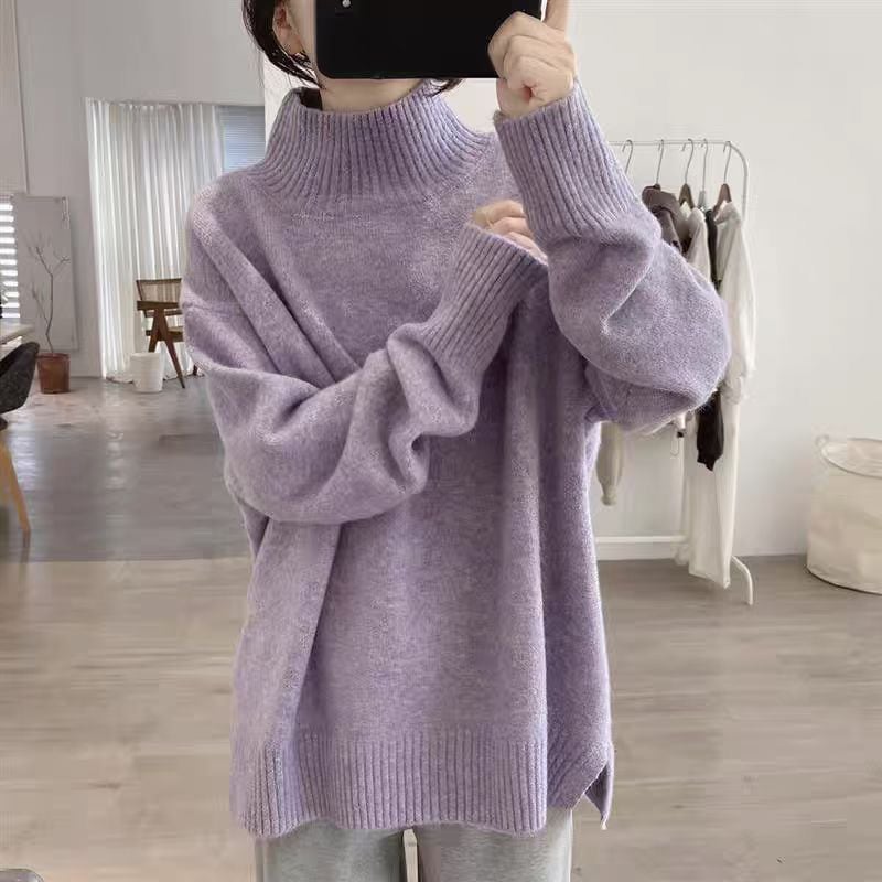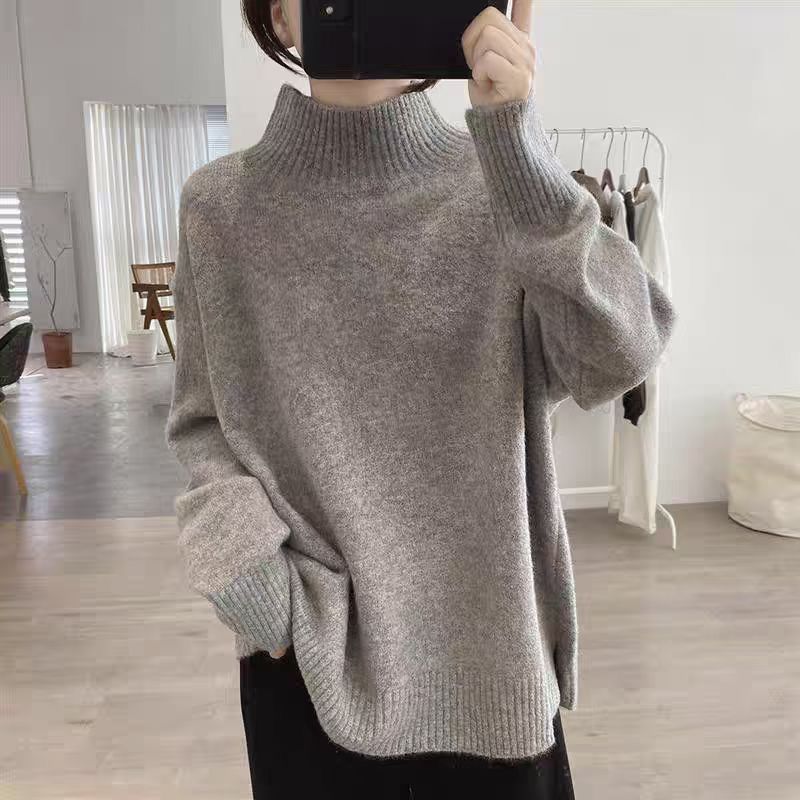 秋冬 百掛け ハイネックニット セーター レディース 韓国ファッション シンプル無地百掛け 韓国ファッション 怠惰な風 ニットトップス タートルネック ゆったり 大きいサイズ