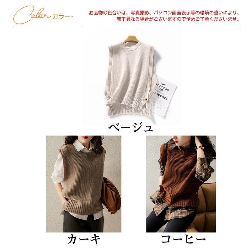 ベスト ニットベスト レディース チョッキ トップス ノースリーブ ゆったり プルオーバー 丸首 セーター 春 通学 通勤 オフィス OL ニット