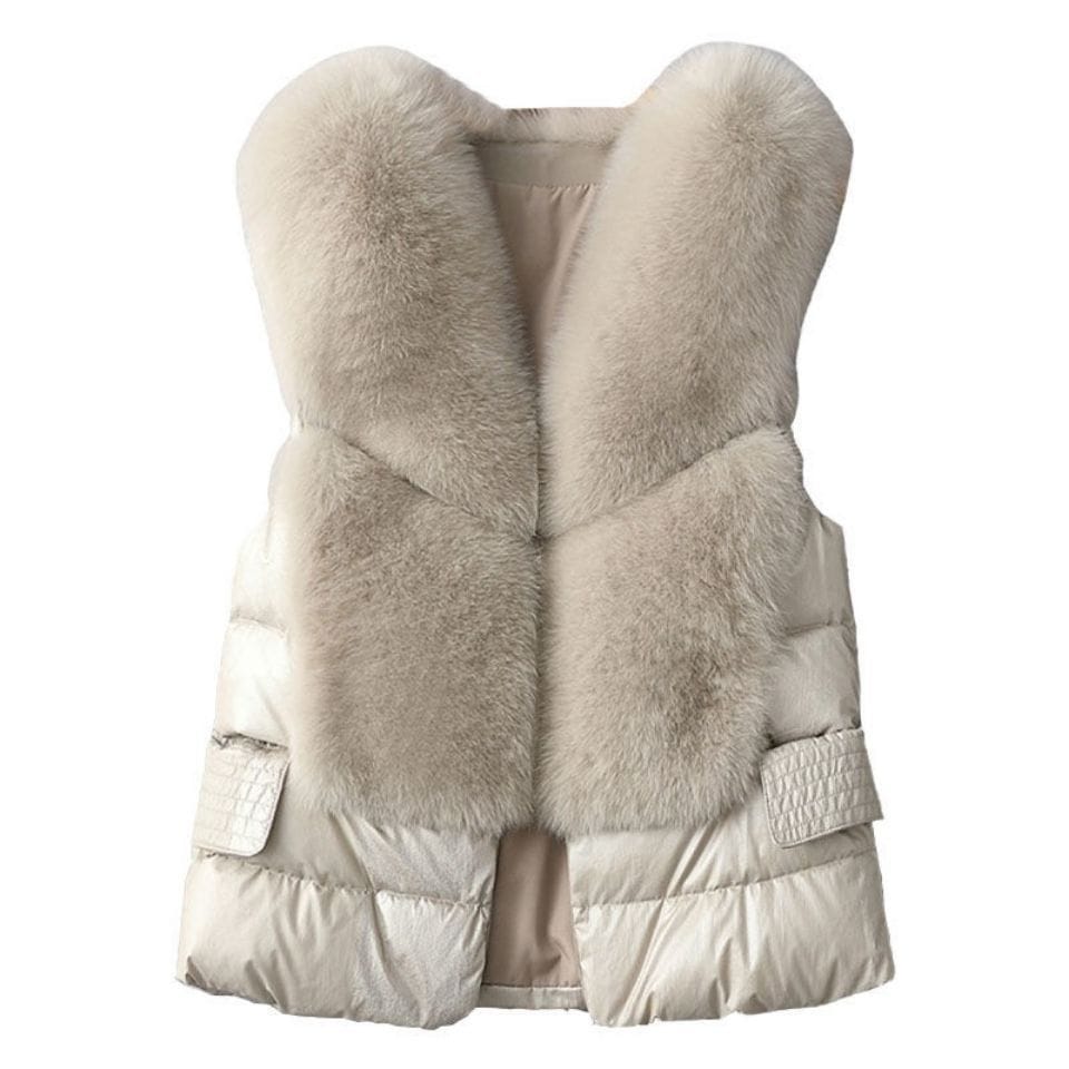 新しい ベスト フェイク フォックスファー ショート丈ダウンジャケット 保温 ファーアウター ベスト