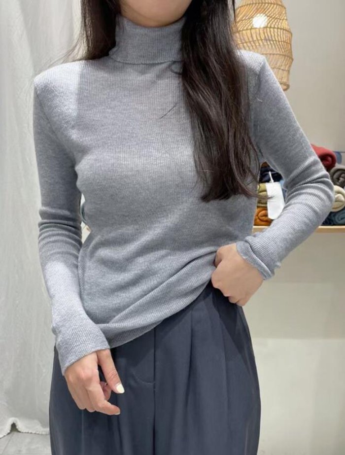 ニット レディース トップス ウール混 タートルニット 長袖 無地 シアーニット ハイネック 薄手 タートルネック リブ カジュアル シンプル セーター ウールブレンドシアーリブニット 春 秋 冬